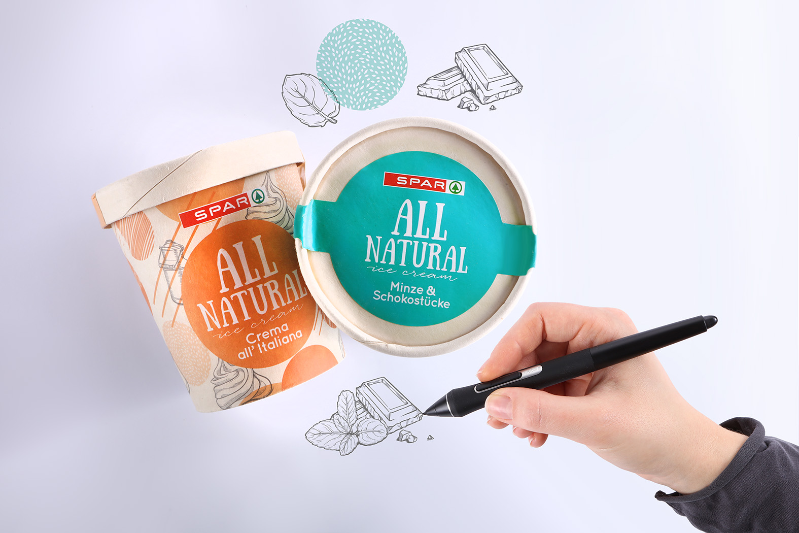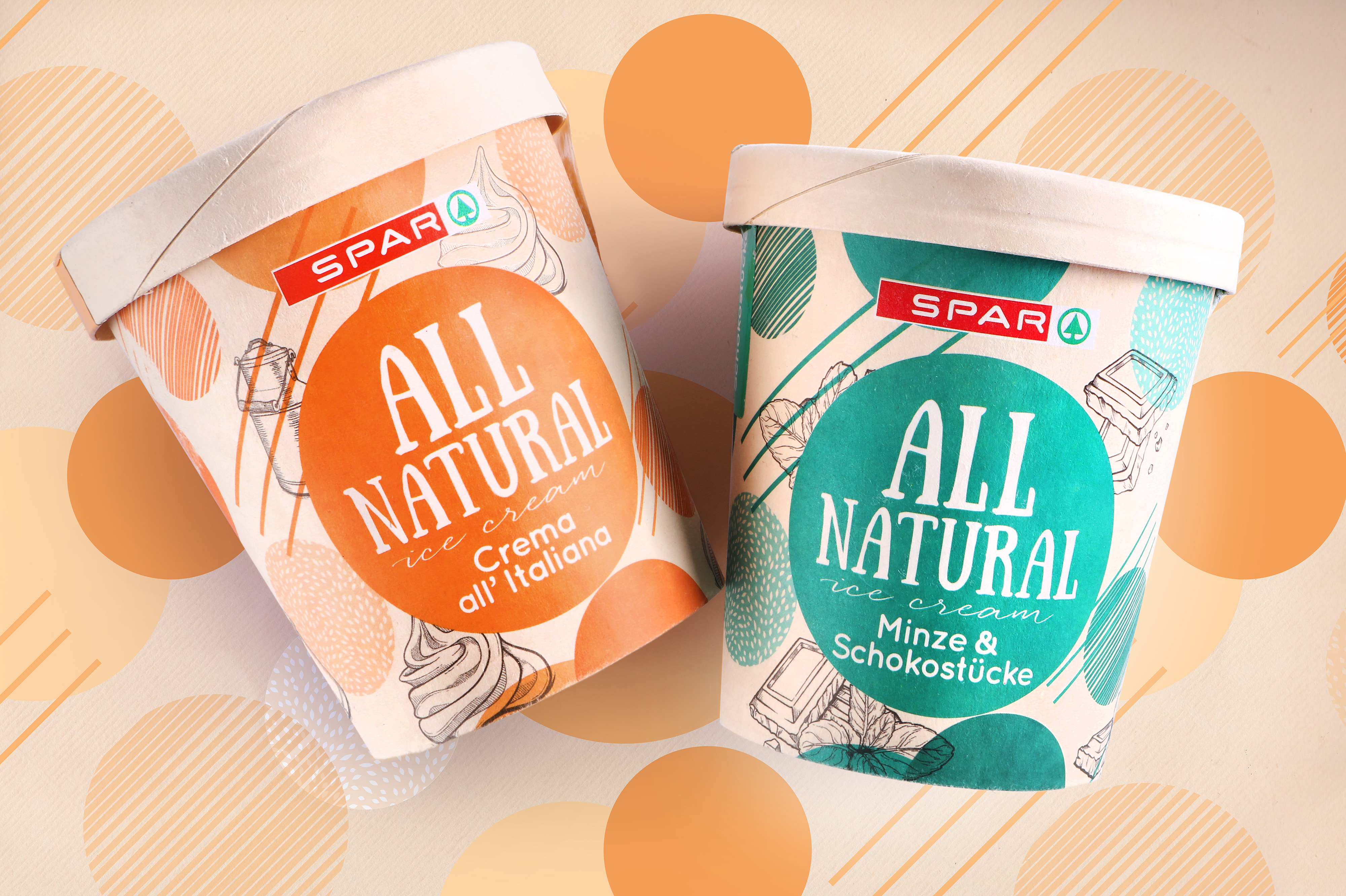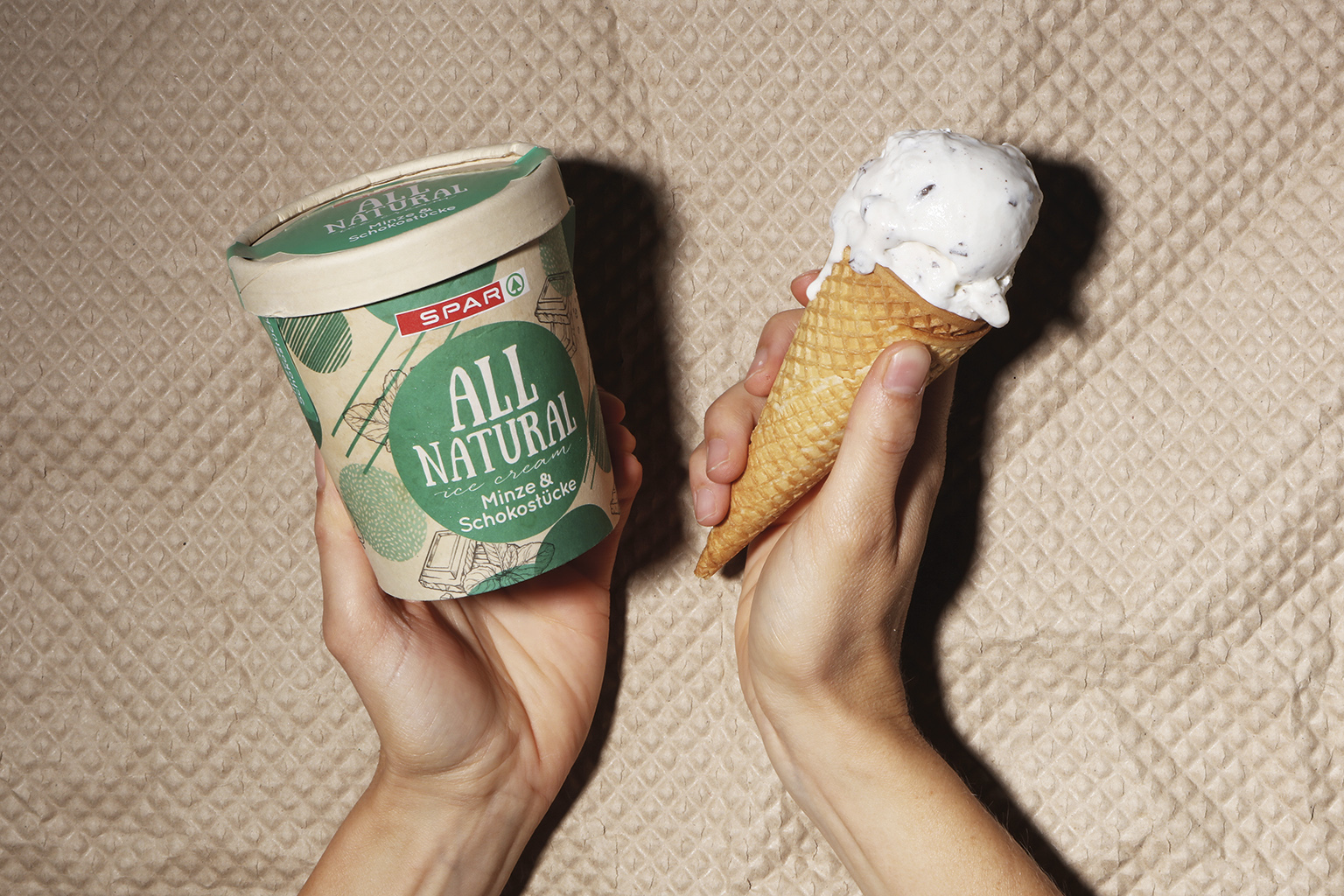 Mit natürlichen Inhaltsstoffen in einer kompostierbaren Verpackung will SPAR mit seinen Eissorten eine umwelt- und ernährungsbewusste Zielgruppe ansprechen.