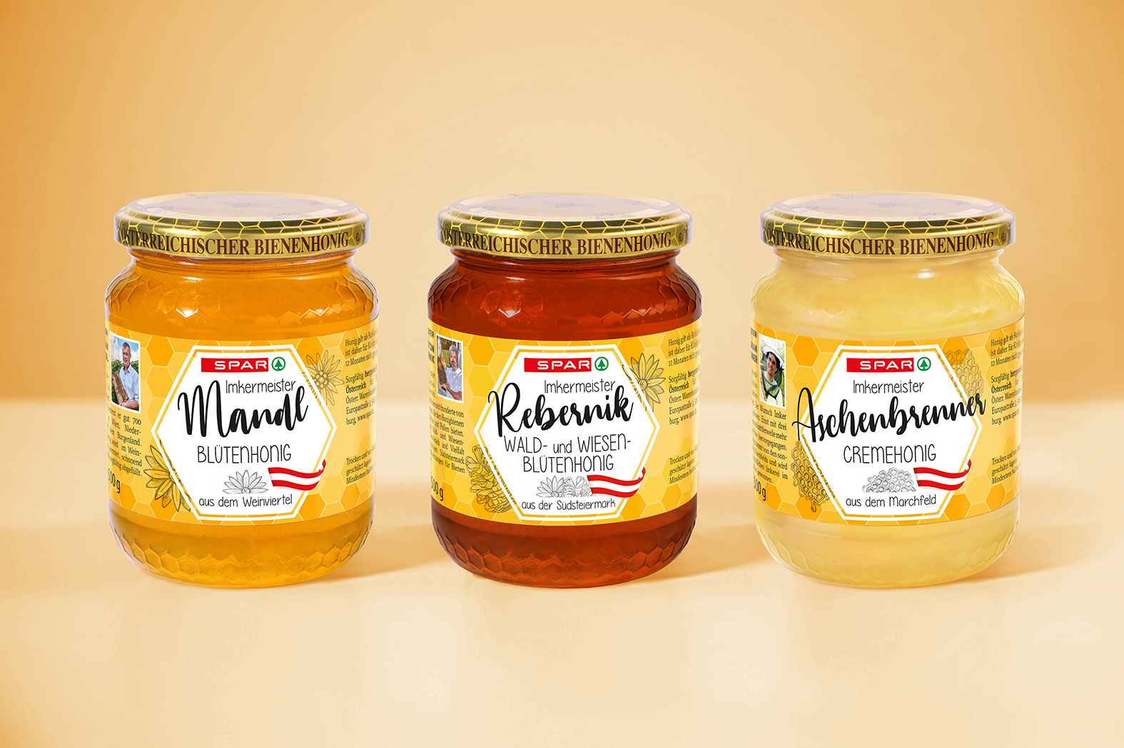 Durch eine explizite Hervorhebung des Imkers selbst wurde nicht der Honig zum Hero, sondern der Erzeuger. Illustrationen und handschriftliche Umsetzungen positionieren den Honig als natürlichste Süße aus handwerklicher Produktion.