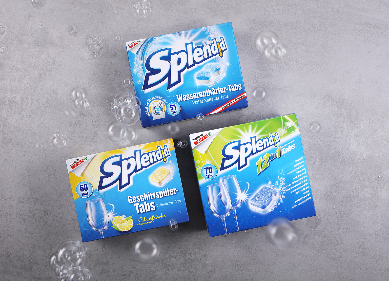 Die eigene Reinigungsserie von SPAR bietet ein breit gefächertes Sortiment unter dem Namen Splendid. Auch hier war eine saubere Lösung gefragt, trotz der unterschiedlichen Produkte einen stringenten Auftritt zu erzielen.