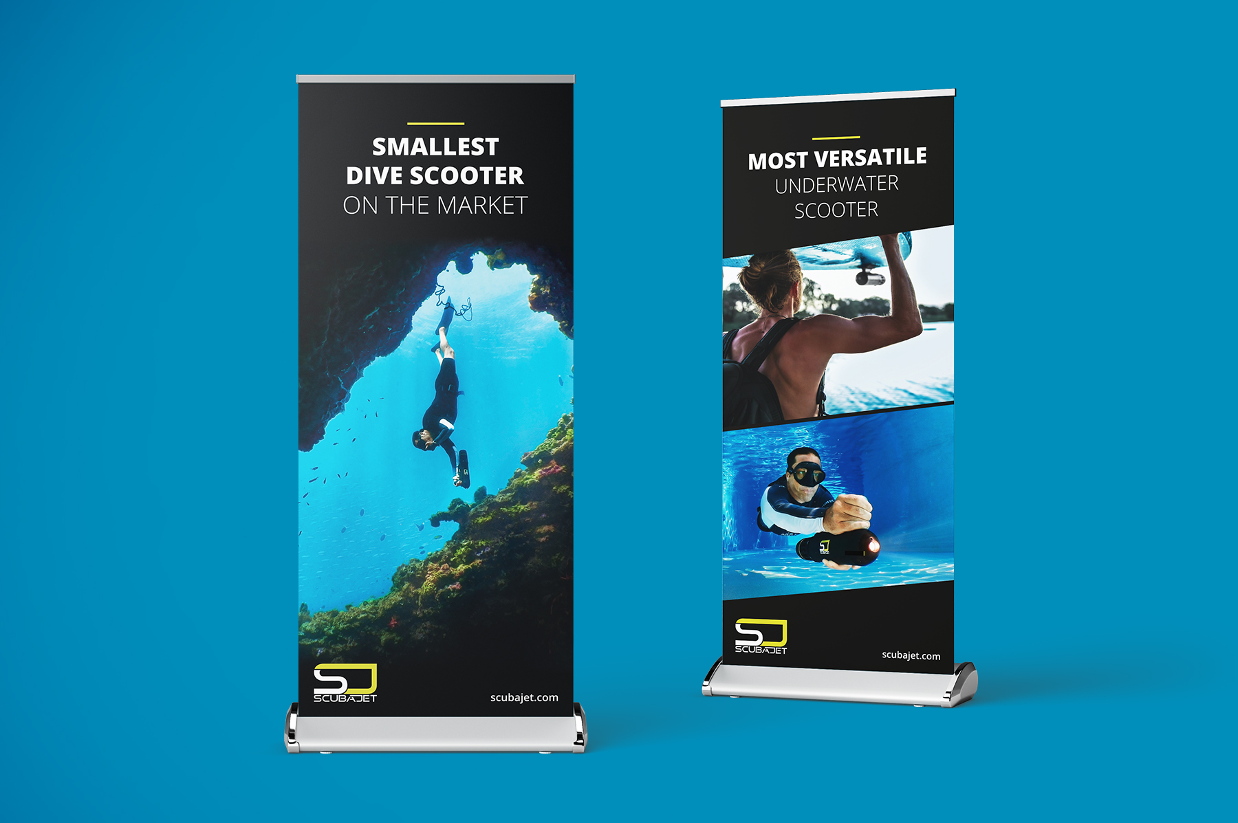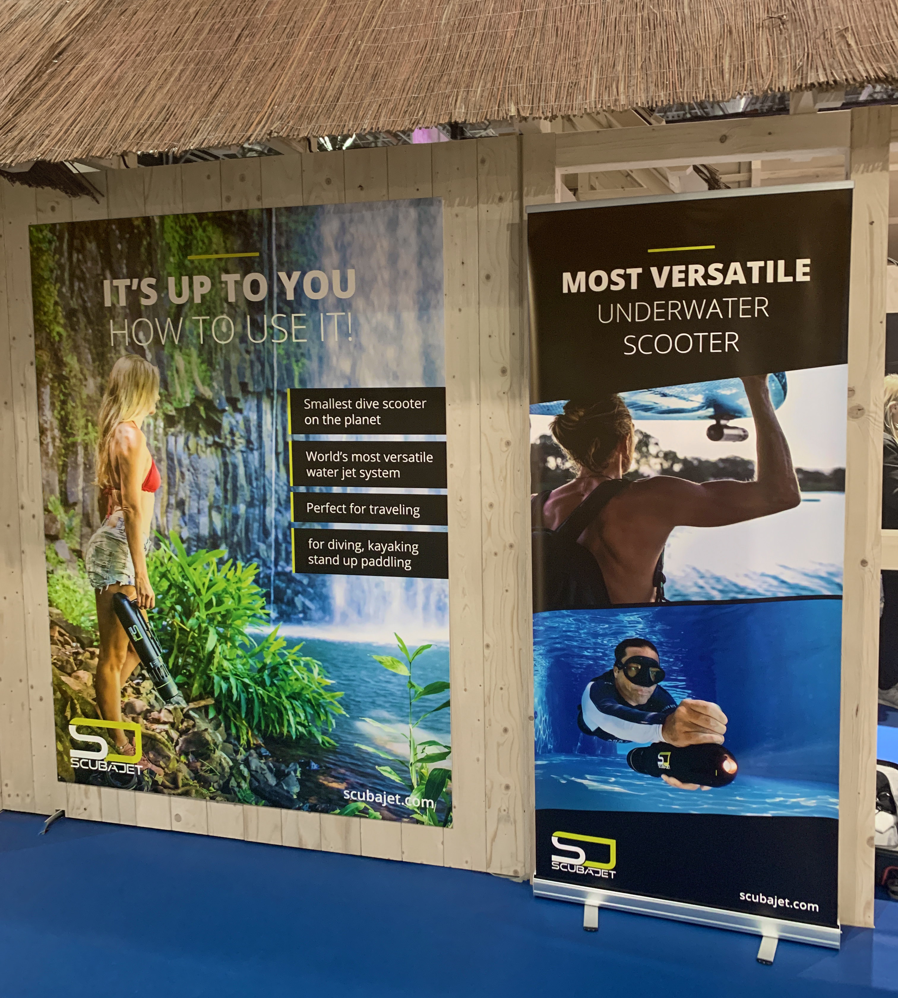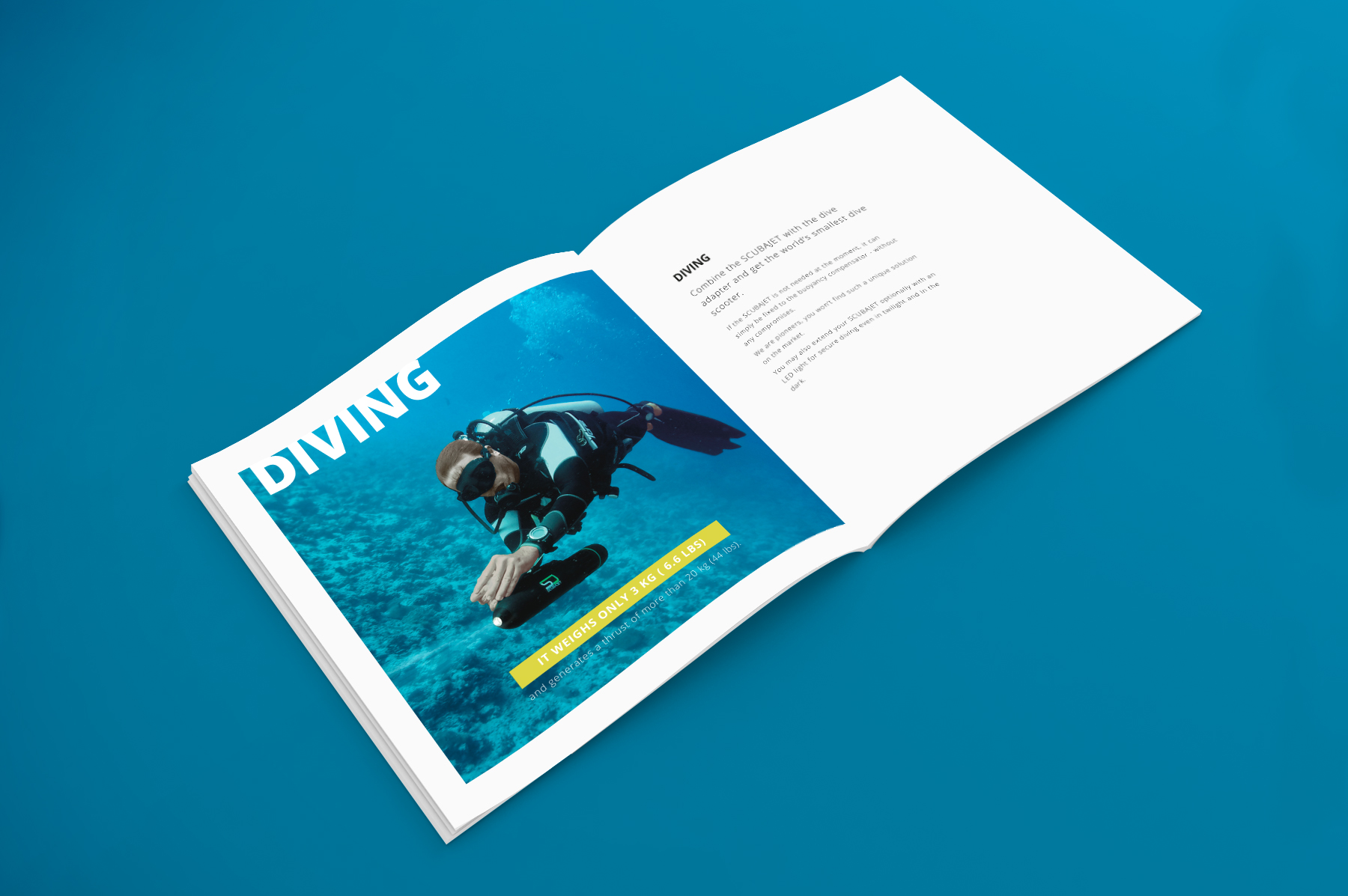 Und dass wir nicht nur Digital können, durften wir in diesem Projekt ebenfalls unter Beweis stellen. SCUBAJET war im Jahr 2017 auf vielen Messen und Demo Days in Europa und den USA unterwegs und benötigte dafür neben einem Messestand (für indoor sowie outdoor) etliche Drucksorten. Daher gestalteten wir Produktfolder, Flyer, Sticker, Roll Ups und vieles mehr. Zur finalen Auslieferung darf natürlich auch eine passende Verpackung nicht fehlen und dazu kam von uns noch ein schön designtes Benutzerhandbuch.