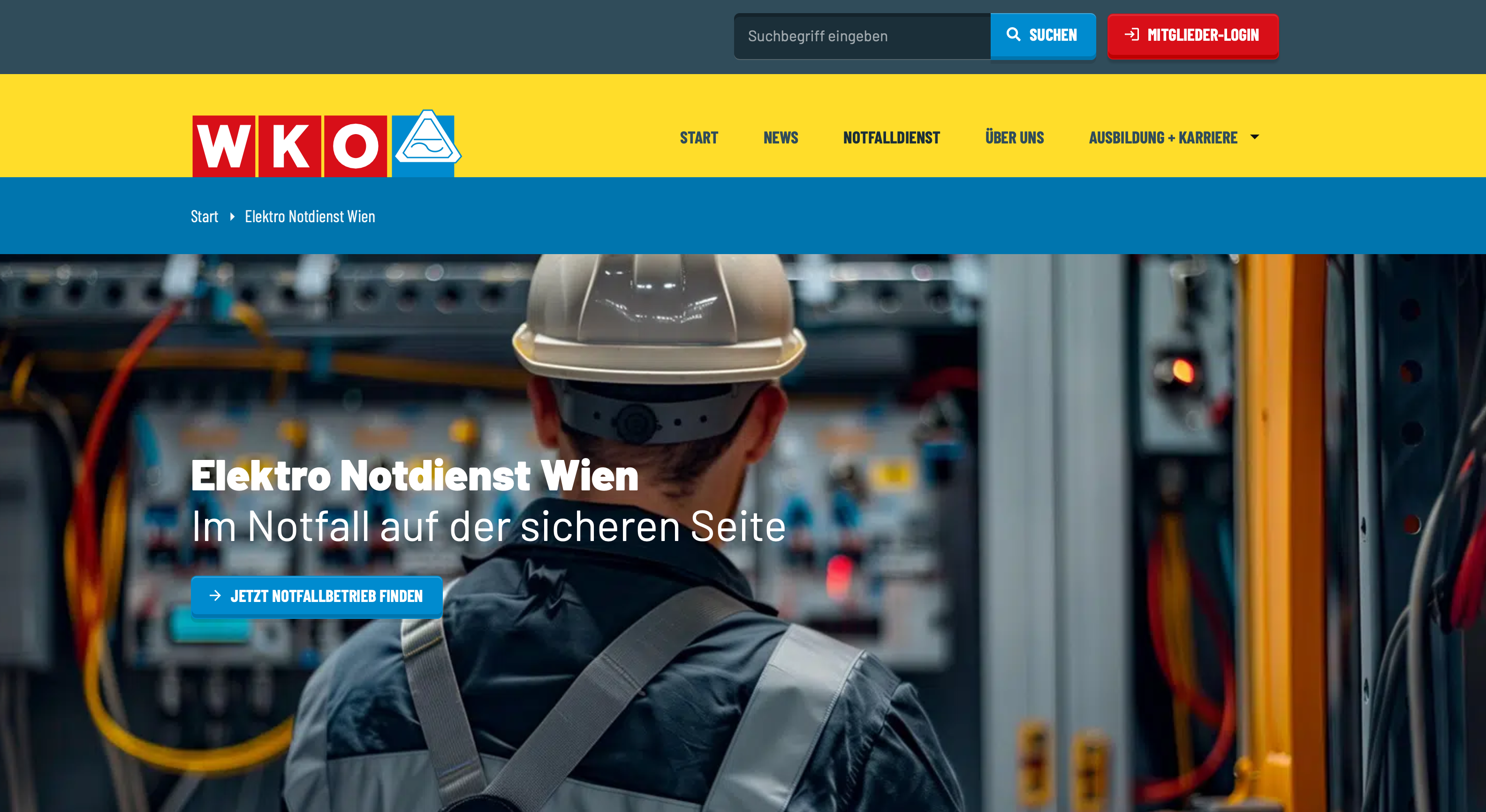 Erweiterung der Website/Integration 24h Notdienst und Lehrlingsbörse elektroinnung-wien.at