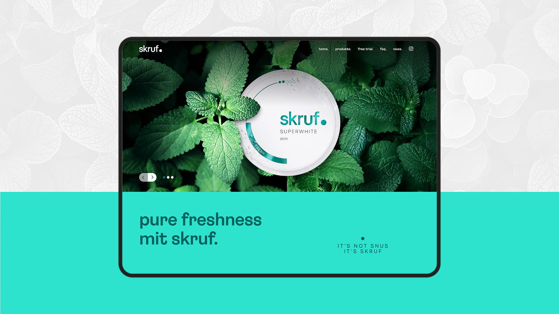 Für skruf sollte eine moderne, animierte Website im frischen Markenlook entstehen – mit neuen Texten, Visualisierungen sowie Funktionen für Free Trial und die Newsletter-Anmeldung.