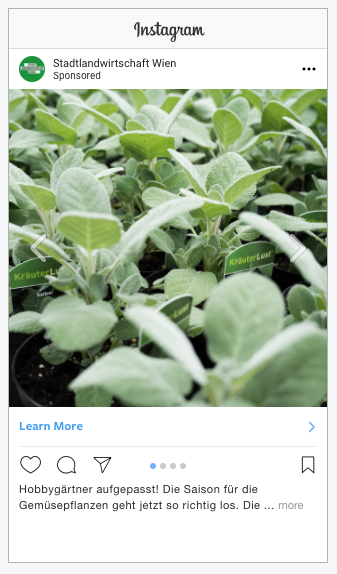 Für die Wiener Landwirtschaftsinitiative Stadtlandwirtschaft haben wir eine Werbestrategie erstellt und gezielte Werbebuchungen auf Social Media durchgeführt. Wir produzierten auch Text, um für ihre verschiedenen Initiativen zu informieren, übernahmen das Community-Management der Stadtlandwirtschaft, den Content Plan und das Paid-Media-Management.