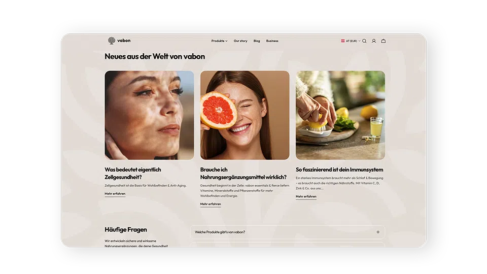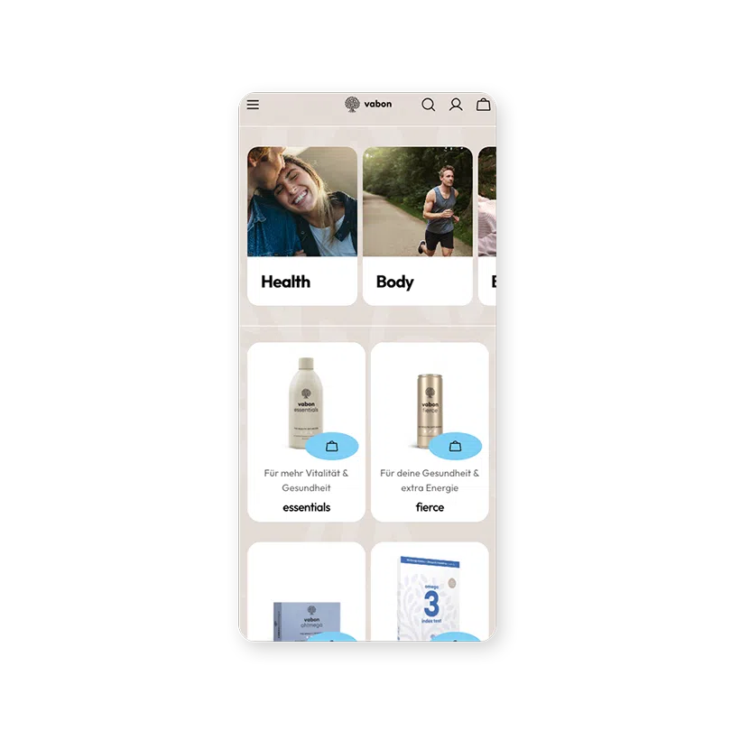 Zentral waren dabei die Anpassung an das Rebranding, die Verbesserung der User Experience sowie die reibungslose Übersetzung der Inhalte in die Landessprachen der 13 Länder, in die vabon liefert.