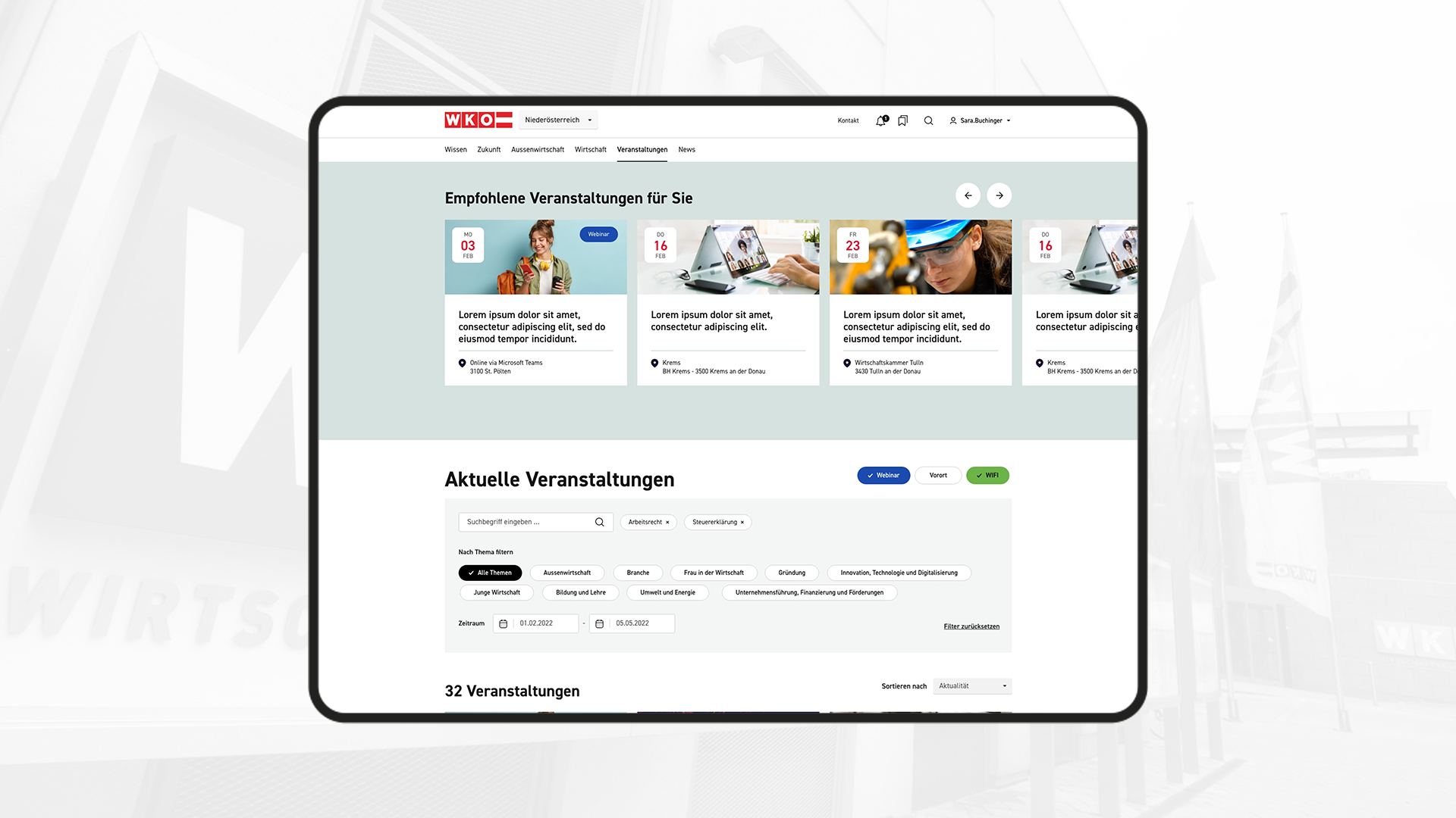 Die WKO ist die umfangreichste Informationsplattform rund um das Thema Wirtschaft in Österreich. Die besondere Herausforderung hierbei war es diese Informationen und Tools für User:innen so klar und strukturiert wie möglich darzustellen. Das heißt eine laufende Evaluierung und Optimierung der User Experience (UX) der Online-Plattform.