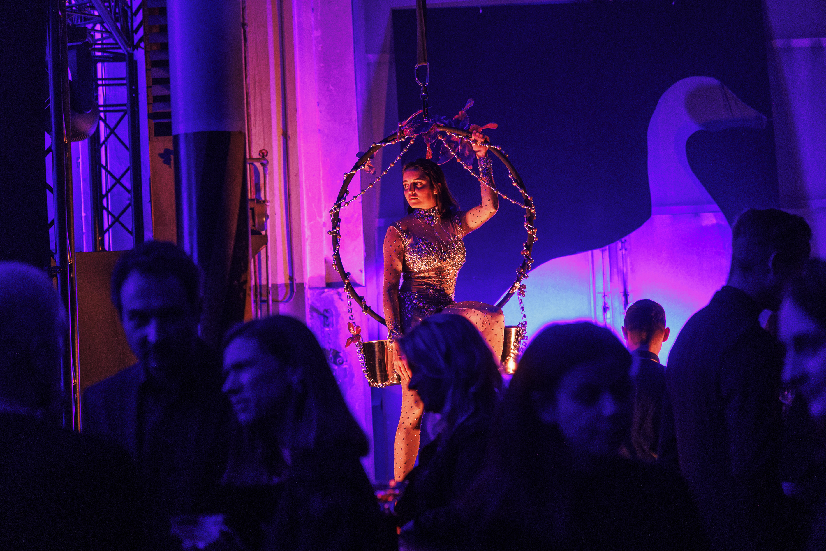 Unter dem Motto „Geile Gans“ entwickelten wir ein modernes Ganslessen-Reimagining, das bewusst mit Erwartungen spielt und dennoch elegant bleibt. Zentrales Gestaltungselement war eine lange Tafel als kommunikatives Herzstück – klarer Fokus auf gemeinsamem Erleben statt klassischem Restaurantsetting. Das Design kombinierte Neonfarben und Lichtakzente mit reduzierter Eleganz und schuf einen edgy Look, der zur Location passte. Dramaturgisch wurde der Abend durch theatralische Überraschungsmomente gegliedert: kurze, präzise platzierte Interventionen über den Verlauf hinweg sorgten für Rhythmus, Gesprächsanlässe und einen roten Faden, ohne den Service zu unterbrechen. So entstand ein Format, das Kulinarik, Inszenierung und Atmosphäre zu einem klar positionierten Erlebnis bündelt.