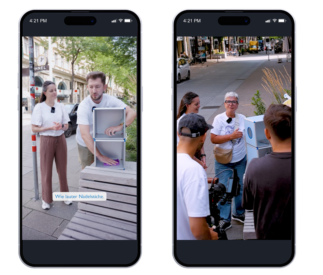 - Ausarbeitung + Abstimmung des Kreativ-Konzepts (Video-Inhalte, Ablauf, Location-Auswahl)