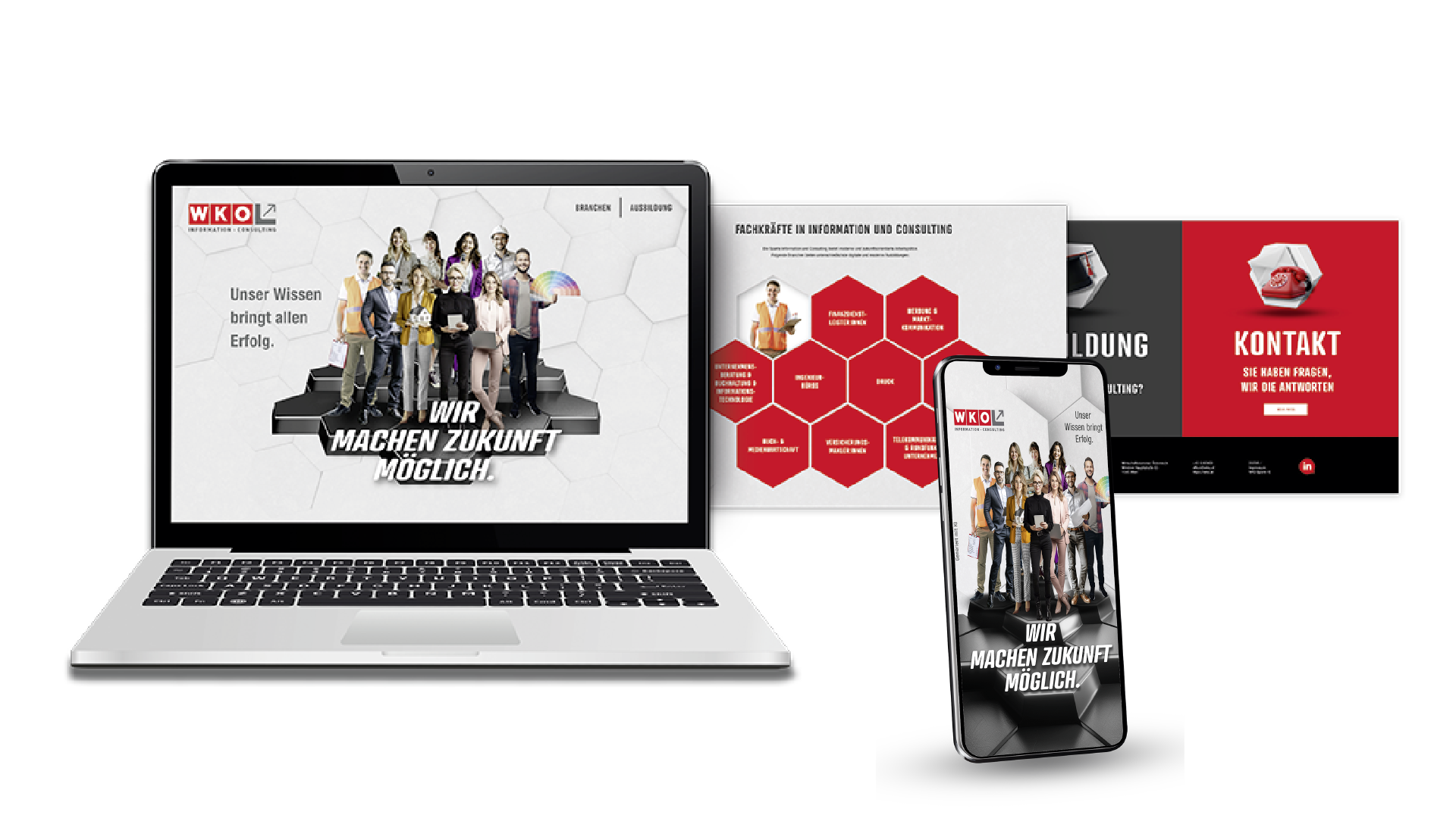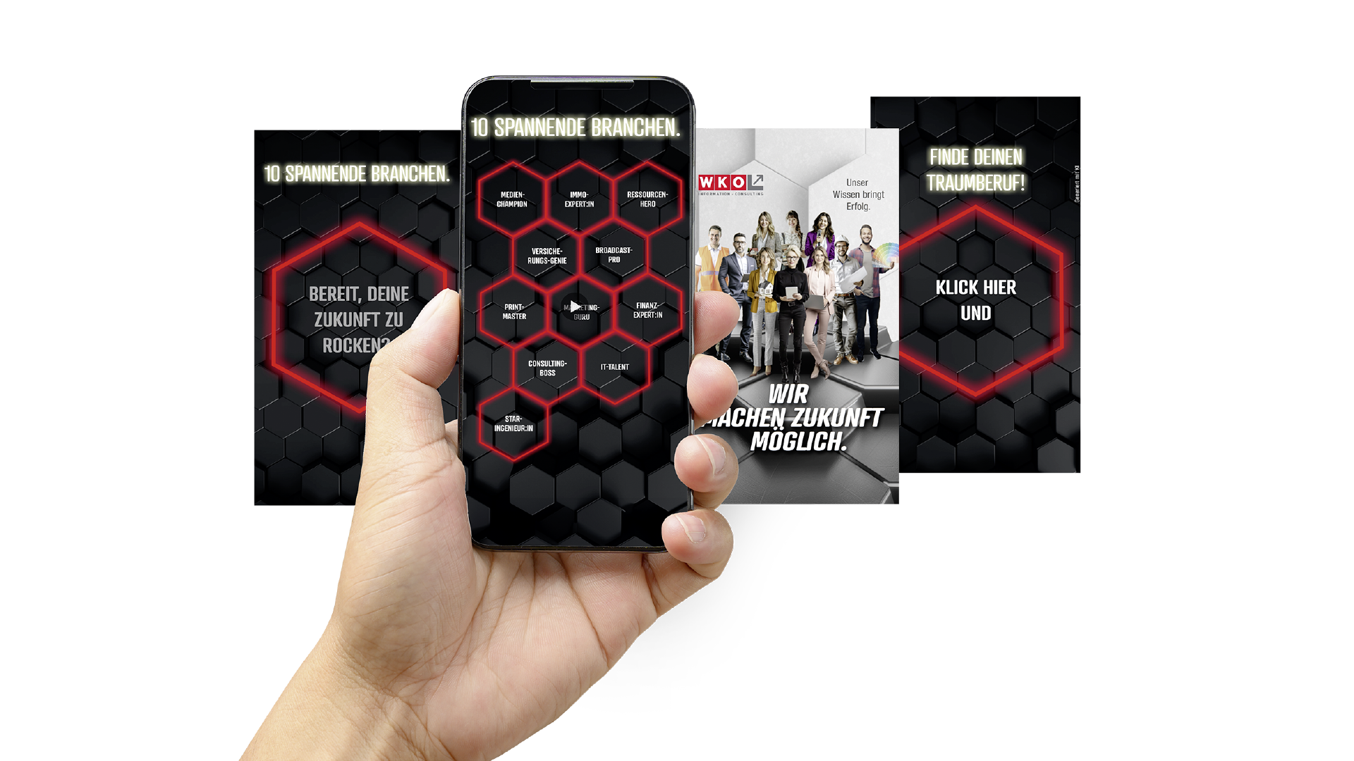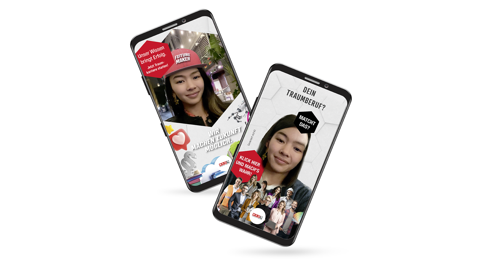 Vom Branding über den Claim bis zum Key Visual entwickelten wir eine konsistente Kampagne, die Haltung zeigt und Zukunft greifbar macht. Im Mittelpunkt: der Claim „Wir machen Zukunft möglich. Unser Wissen bringt Erfolg.“ – kombiniert mit einem cleanen, modernen Look und KI-generierten People-Sujets. Das zentrale Dachsujet und zehn individuelle Fachverbandsmotive sorgen für Wiedererkennbarkeit und gleichzeitig für die nötige Flexibilität, um die Vielfalt der Fachbereiche sichtbar zu machen. Die barrierefreie Landingpage www.ichmachzukunftmoeglich.at wurde UX-optimiert umgesetzt. Social-Media-Kampagnen auf TikTok, Snapchat und LinkedIn holen die Zielgruppen direkt ab – mit animierten Sujets, Story Ads und interaktiven Formaten.