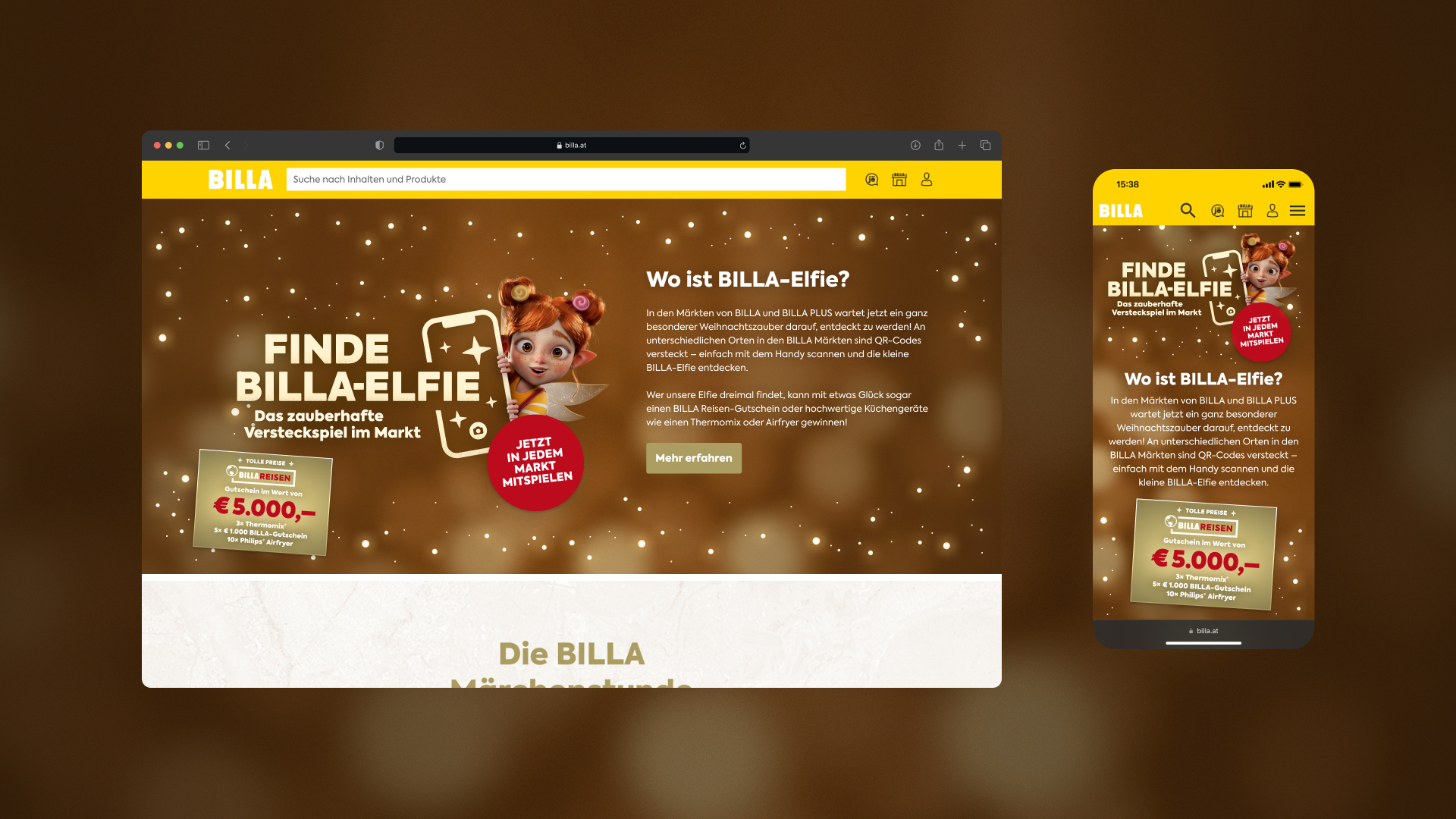 In der stark umkämpften Weihnachtszeit haben wir gemeinsam mit BILLA ein zauberhaftes Augmented Reality Versteckspiel rund um die beliebte BILLA-Elfie entwickelt. Unser Ziel war es, von November bis Ende Dezember für weihnachtliche Stimmung in den Filialen zu sorgen und Kund:innen mittels Gamification in die Märkte zu ziehen.