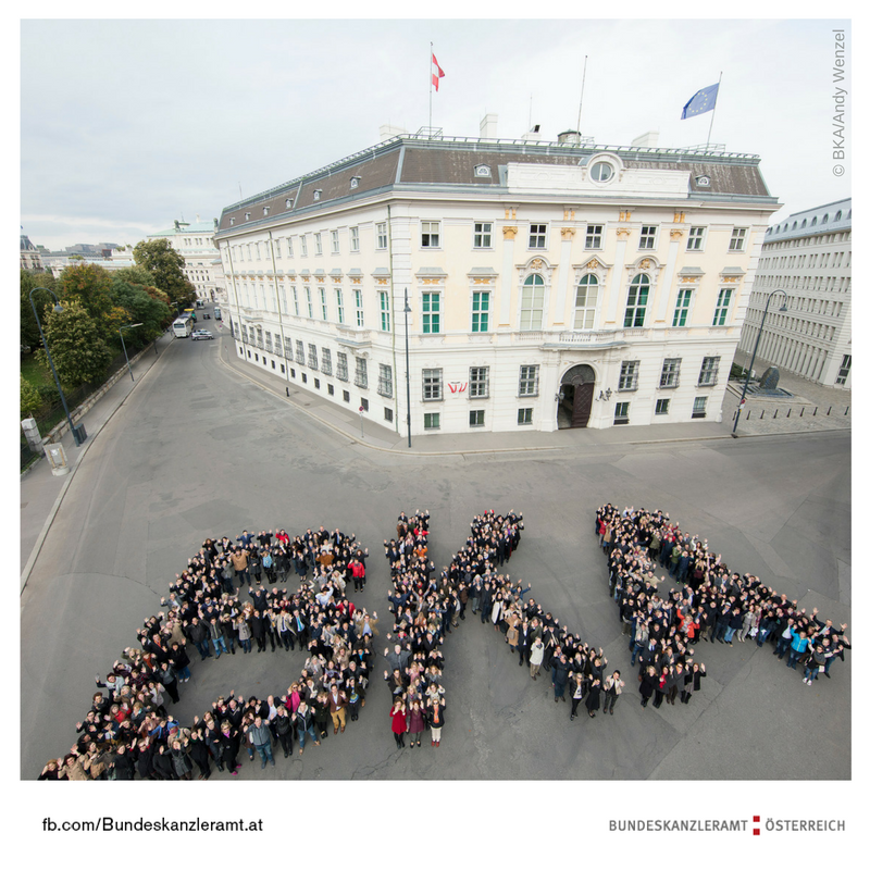 BKA Logo Variabel so gestalten, dass zwischen 300 und 600 Mitarbeiter darin Platz haben und vom Kran aus gesehen, diese Mitarbeiter das Logo bilden