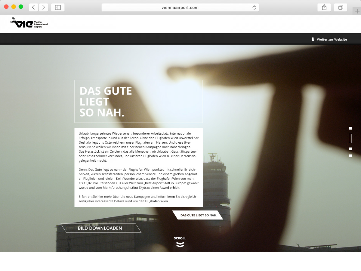 Premiere und Ehre: Zum ersten Mal in der Geschichte des Flughafens wurden Spots gedreht. Online bereits zu sehen, demnächst auch im TV. In Printmedien wird schon fleißig geschalten und online findet man auf einer eigenen Microsite alle Hintergrundinformationen zur Kampagne.