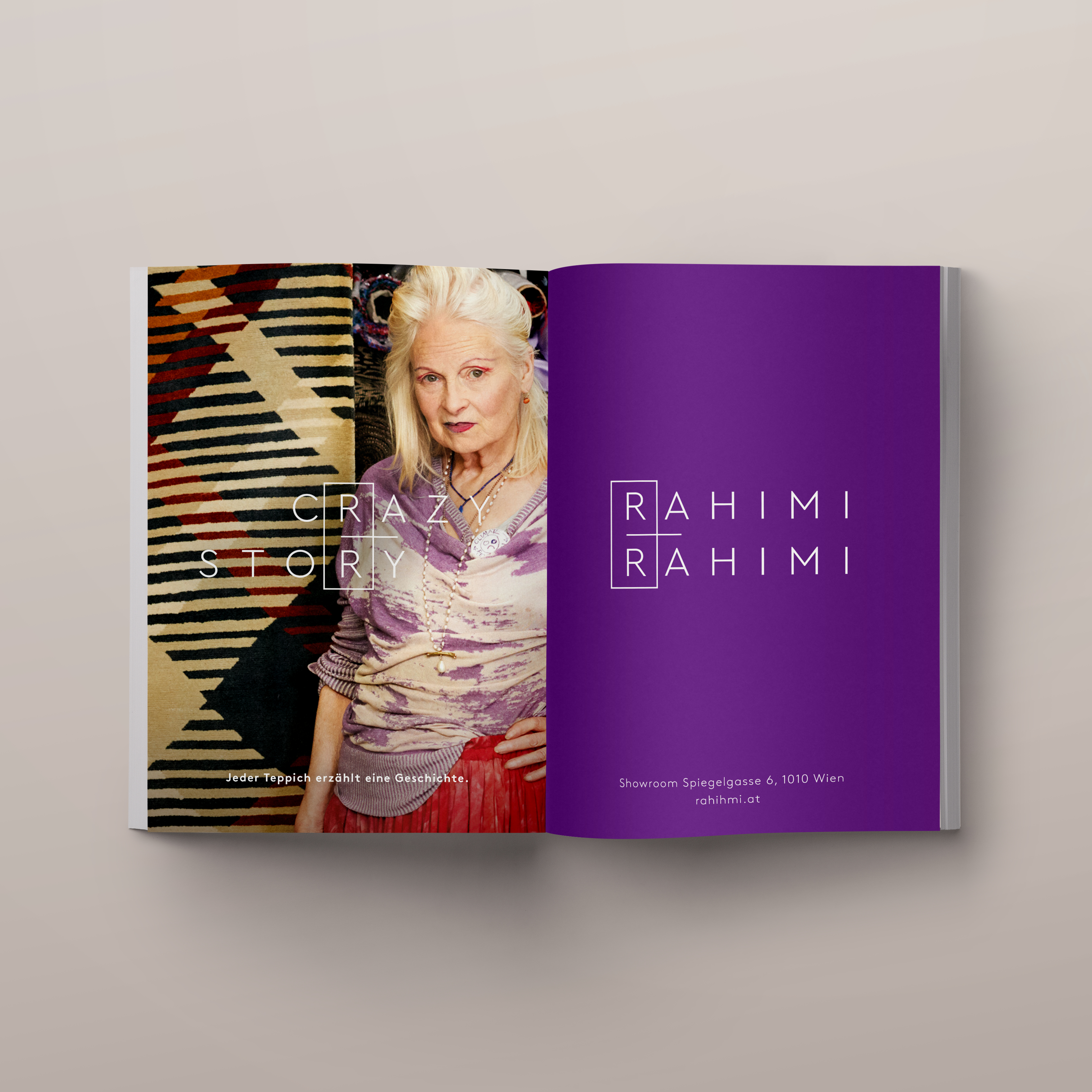 Im Fokus der Kommunikation steht das neue Logo, das als integriertes Element in den Headlines der Anzeigen Teppichkunst untrennbar mit dem Namen Rahimi & Rahimi verknüpft. Teppiche sind mehr als ein Bodenbelag. Jeder Knoten, jede Reihe, jedes Muster erzählt eine eigene Geschichte.