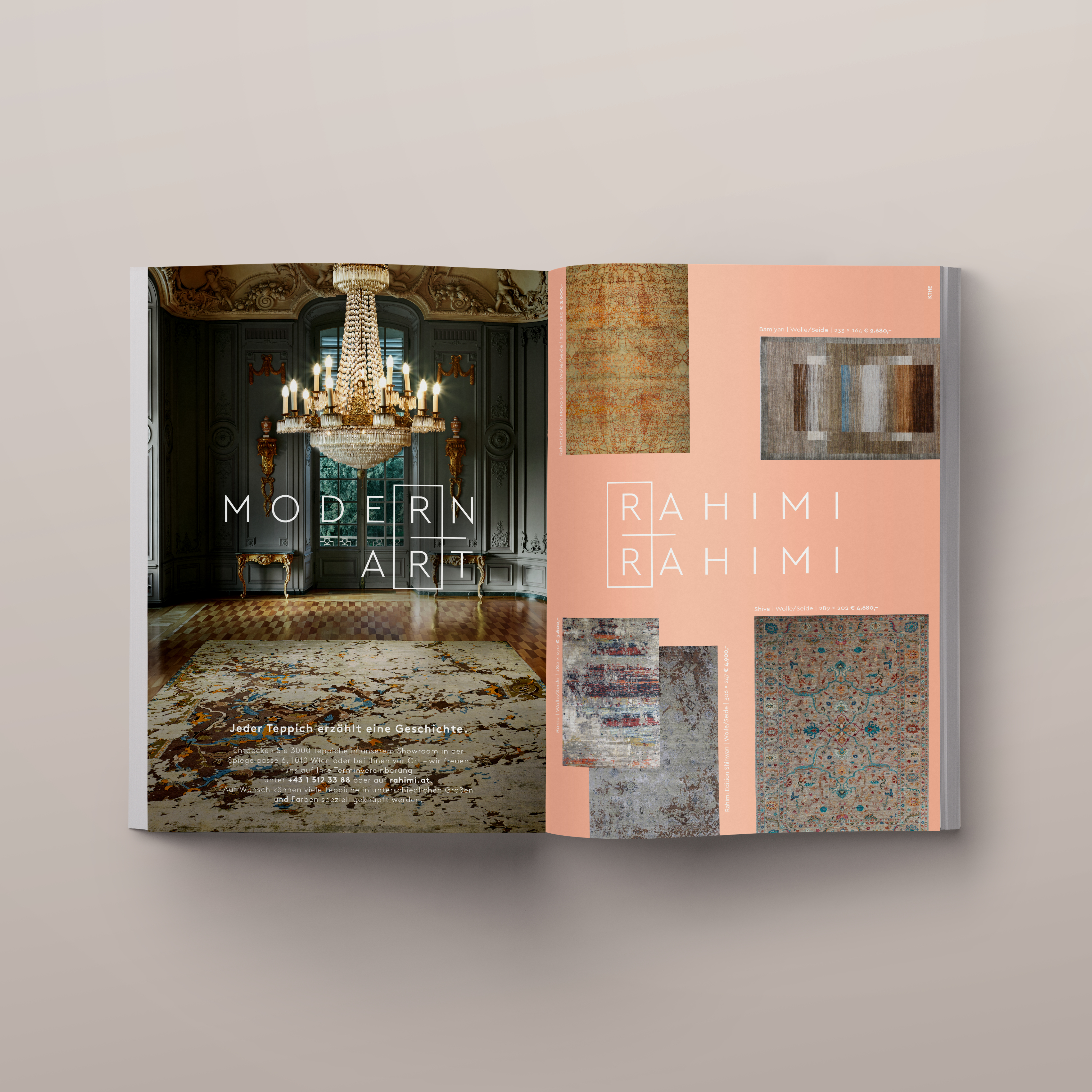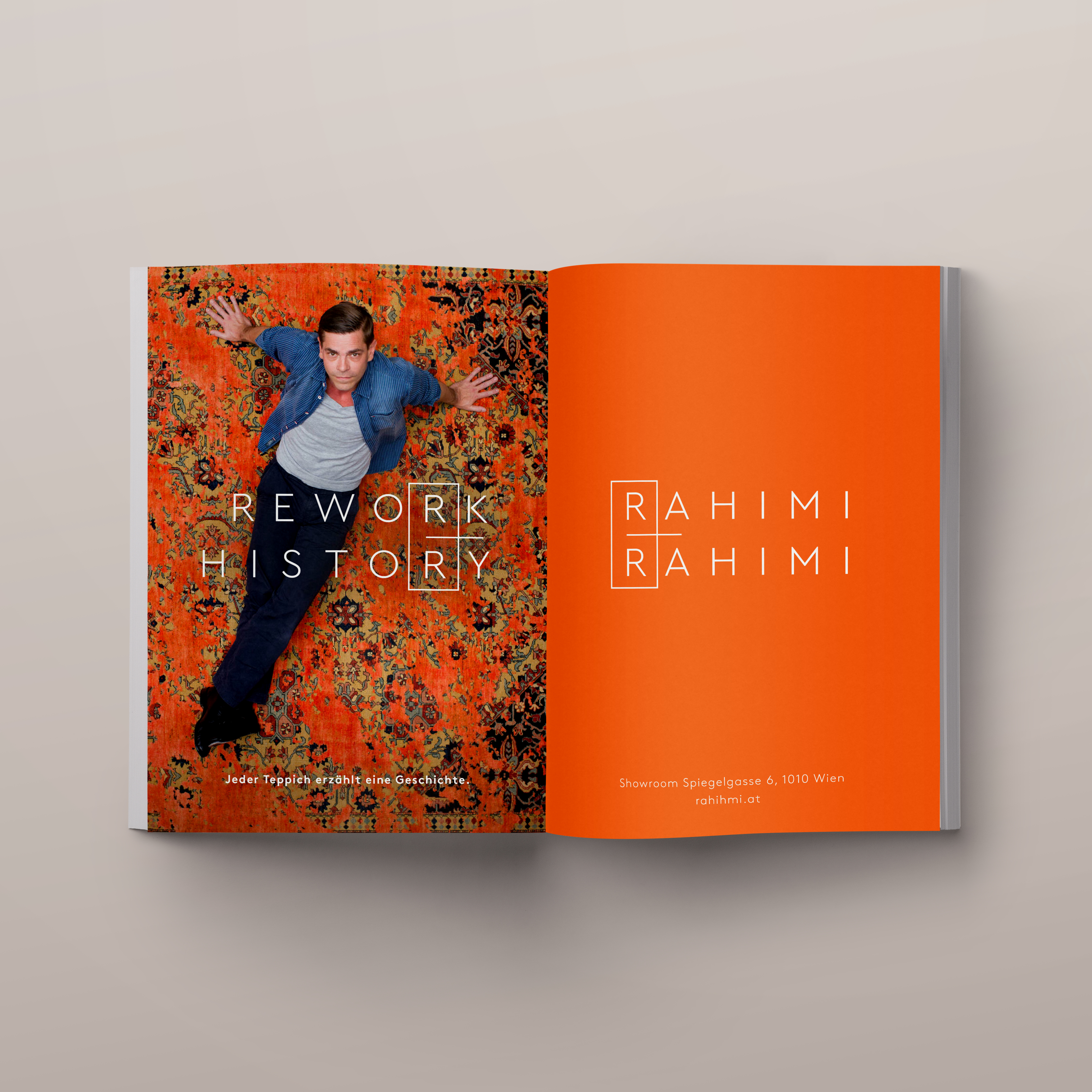 Rahimi & Rahimi ist seit Generationen Vorreiter im Teppichhandel und bietet neben antiken Einzelstücken auch Designs von den Fashion-Größen Vivienne Westwood, Alexander McQueen, Jan Kath und Paul Smith an. Um diese Verbindung von Tradition und Moderne auch in der Corporate Identity sicht- und spürbar zu machen, beauftragte Rahimi & Rahimi die Kreativagentur KOBZA AND THE HUNGRY EYES (KTHE) mit dem Re-Branding und dem neuen Auftritt der Marke Rahimi & Rahimi.