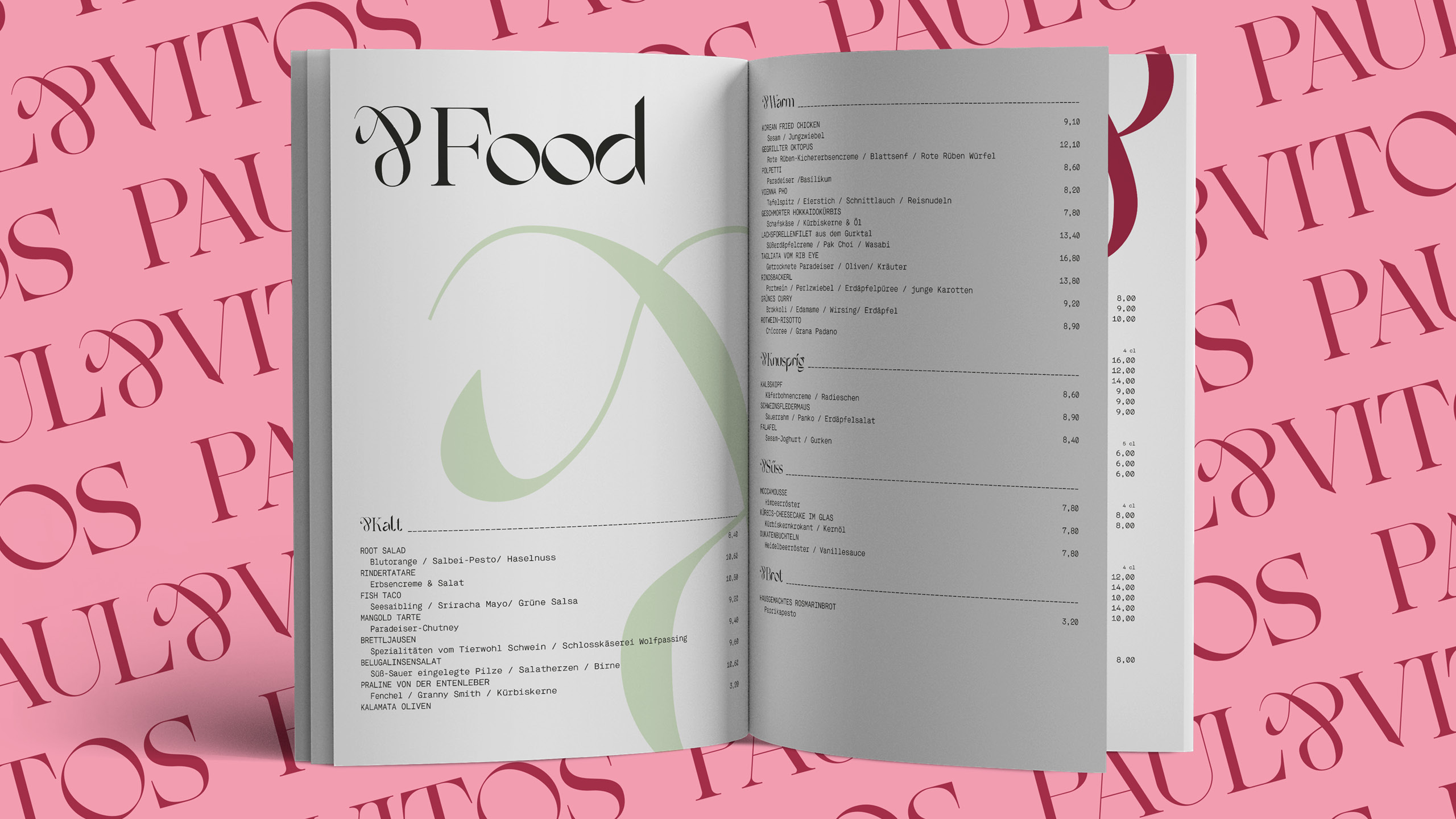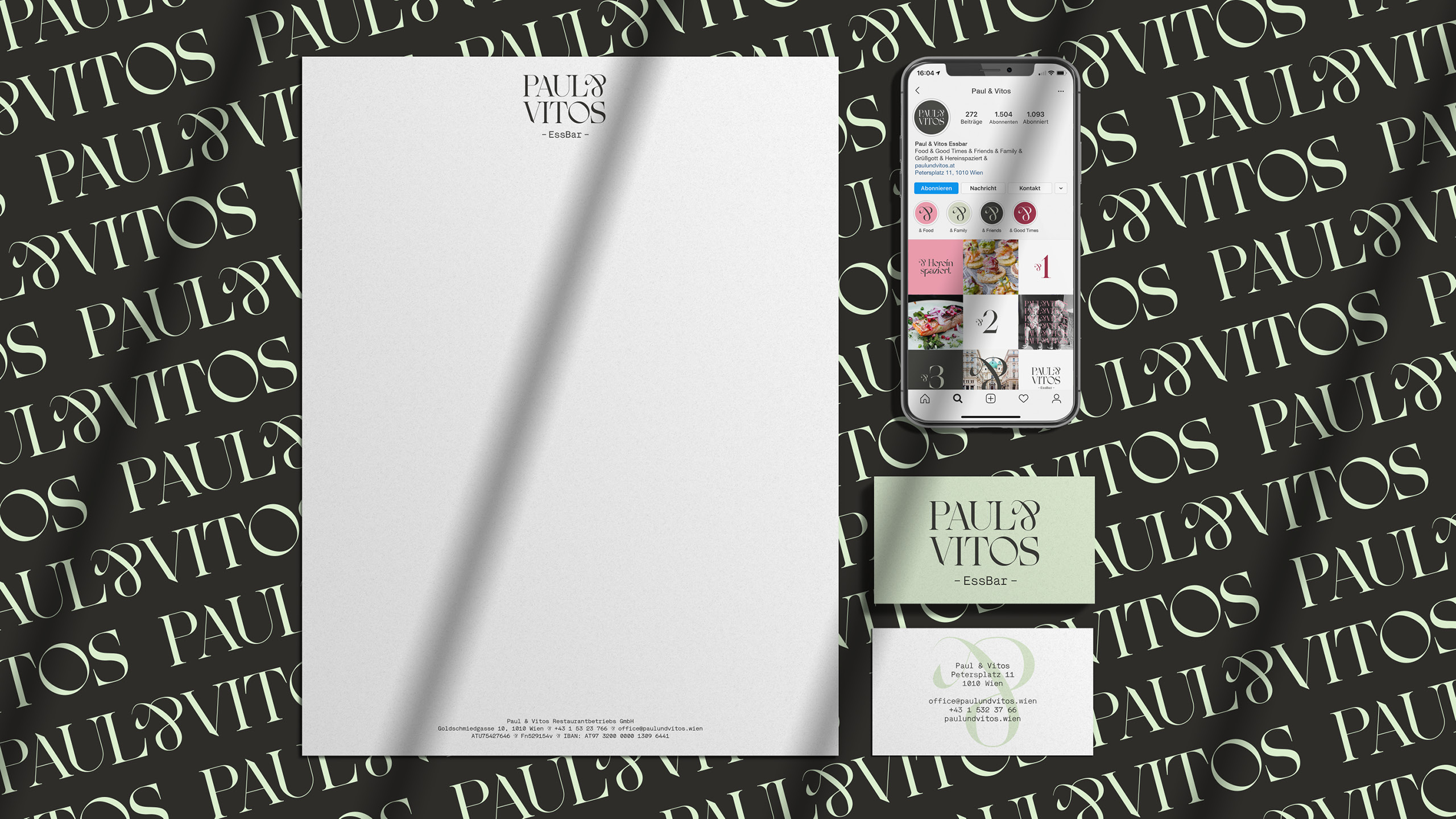 Im Fokus der Kommunikation steht untrennbar neben den Namen der beiden Zwillingssöhne Paul & Vitos das markante &-Zeichen, welches als Alleinstellungsmerkmal die Zusammengehörigkeit von Genuss und Gemeinsamkeit symbolisiert. Diese perfekte Symbiose wurde im Logo, auf den Visitenkarten, Speise- und Getränkekarten bis hin zur Gestaltung der Website und eines ganzheitlichen Social Media Auftritts einzigartig umgesetzt.