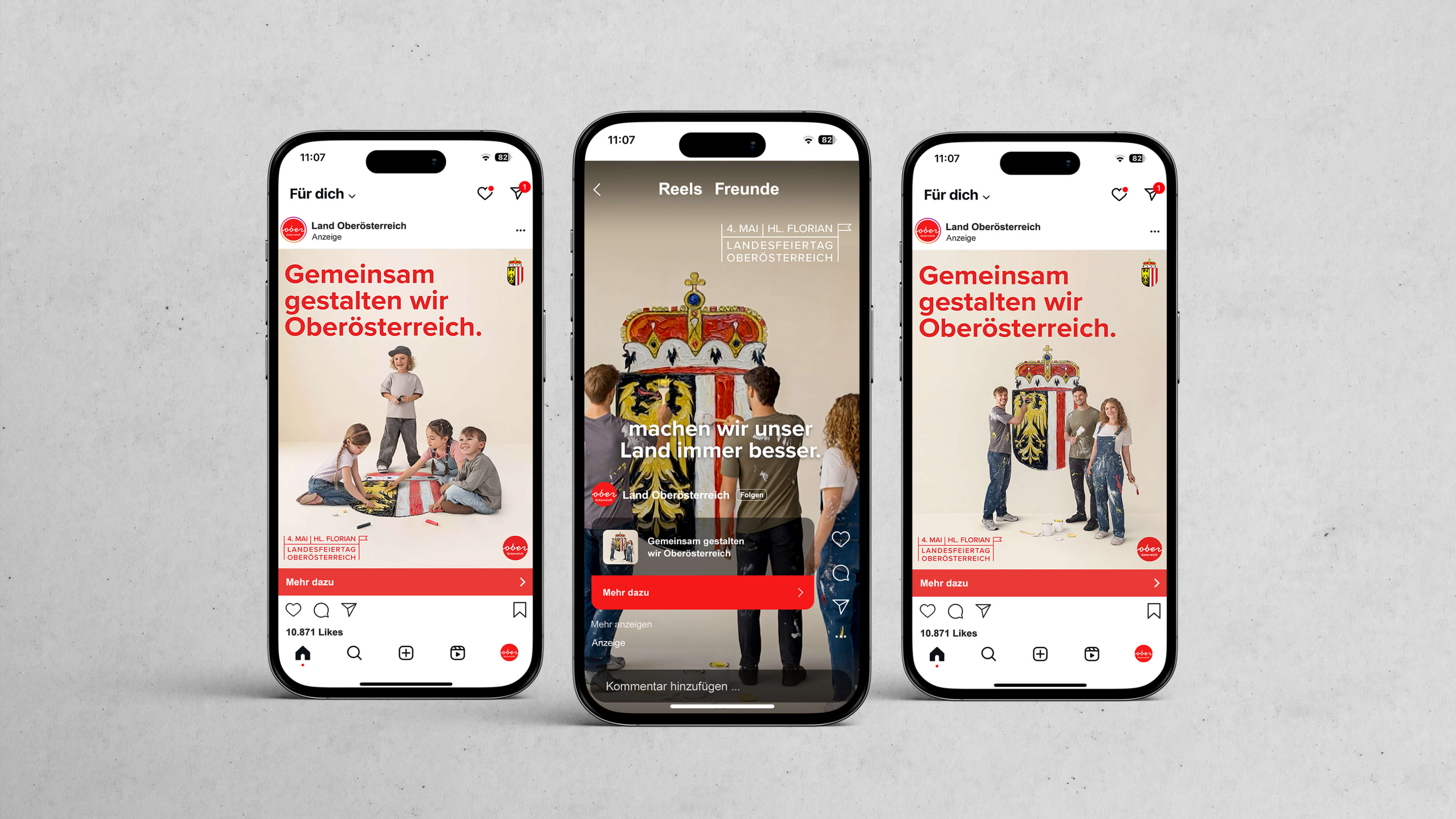 Anlässlich des Tages des Hl. Florian am 4. Mai durfte REICHLUNDPARTNER im Auftrag des Landes Oberösterreich auch heuer wieder eine Kampagne zum oberösterreichischen Landesfeiertag umsetzen. Im Jahr 2026 stehen Gemeinschaft und Zusammenhalt im Fokus: Was auch immer die Zukunft bringen mag, Oberösterreich hält zusammen. Die Kampagne zeigt, was das Bundesland ausmacht: das Miteinander über Generationen, Regionen und Gesellschaftsschichten hinweg. Mit starken Bildern und klaren Botschaften auf allen Kanälen wird das Wir-Gefühl im Land sichtbar gestärkt.