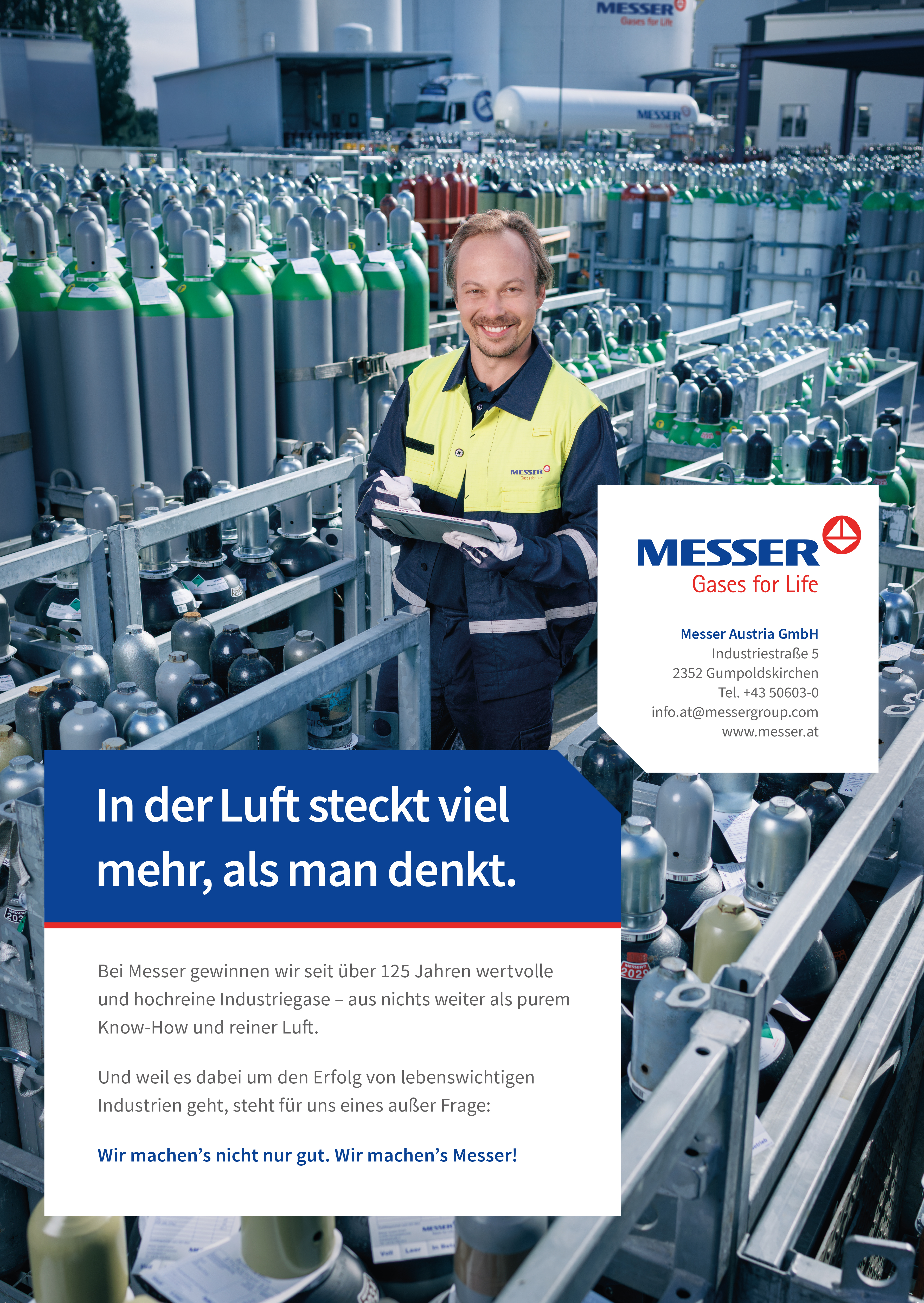 Für Messer Austria entwickelten wir eine Imagekampagne, die das Unternehmen als vielseitigen Partner moderner Industrien sichtbar macht. Unser Ansatz: Eine klare, selbstbewusste Leitidee, die zeigt, dass Messer mehr bietet als Spezialgase – nämlich Lösungen, die Prozesse verbessern und Zukunft ermöglichen.