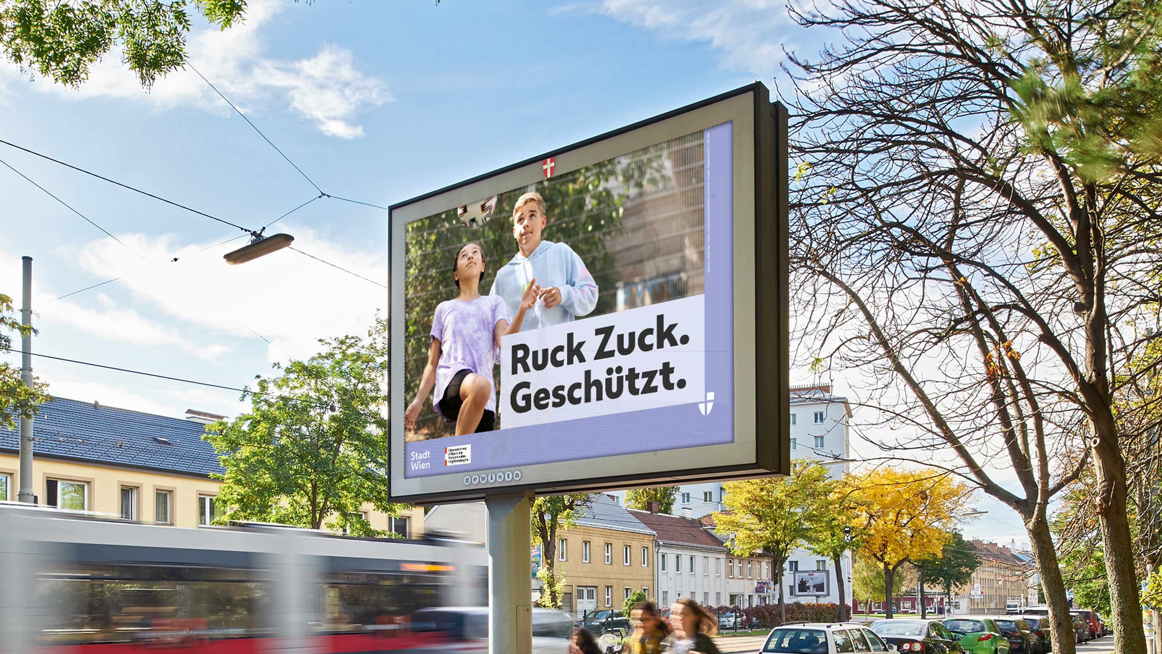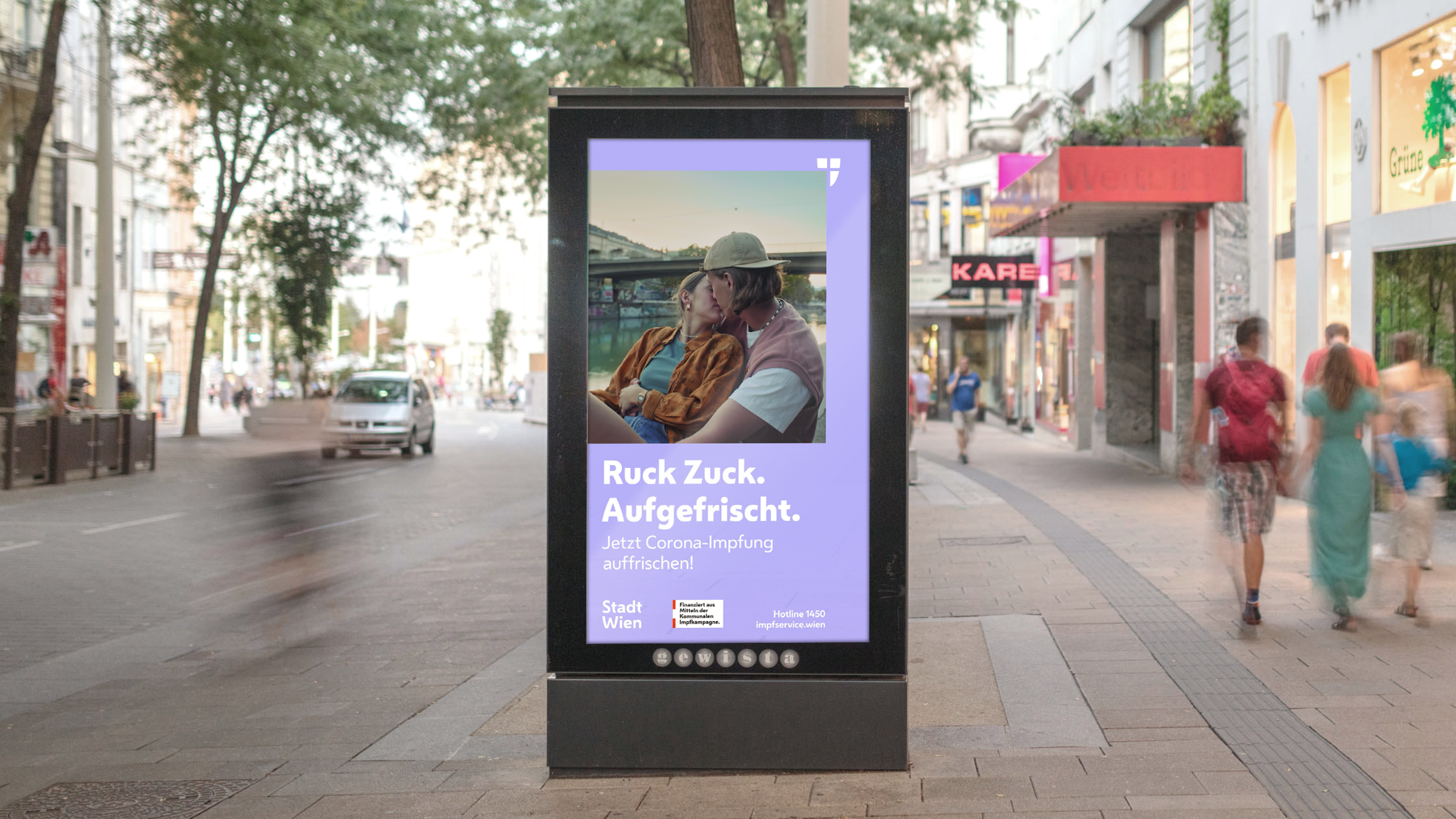 Entwicklung einer Informations-Kampagne für die Stadt Wien, die den minimalen Zeitaufwand einer Covid-Schutzimpfung den Corona-Langzeitfolgen gegenüberstellt: RUCK ZUCK. AUFGEFRISCHT. Impfen dauert nur 1 Sekunde. Long Covid dauert Jahre.