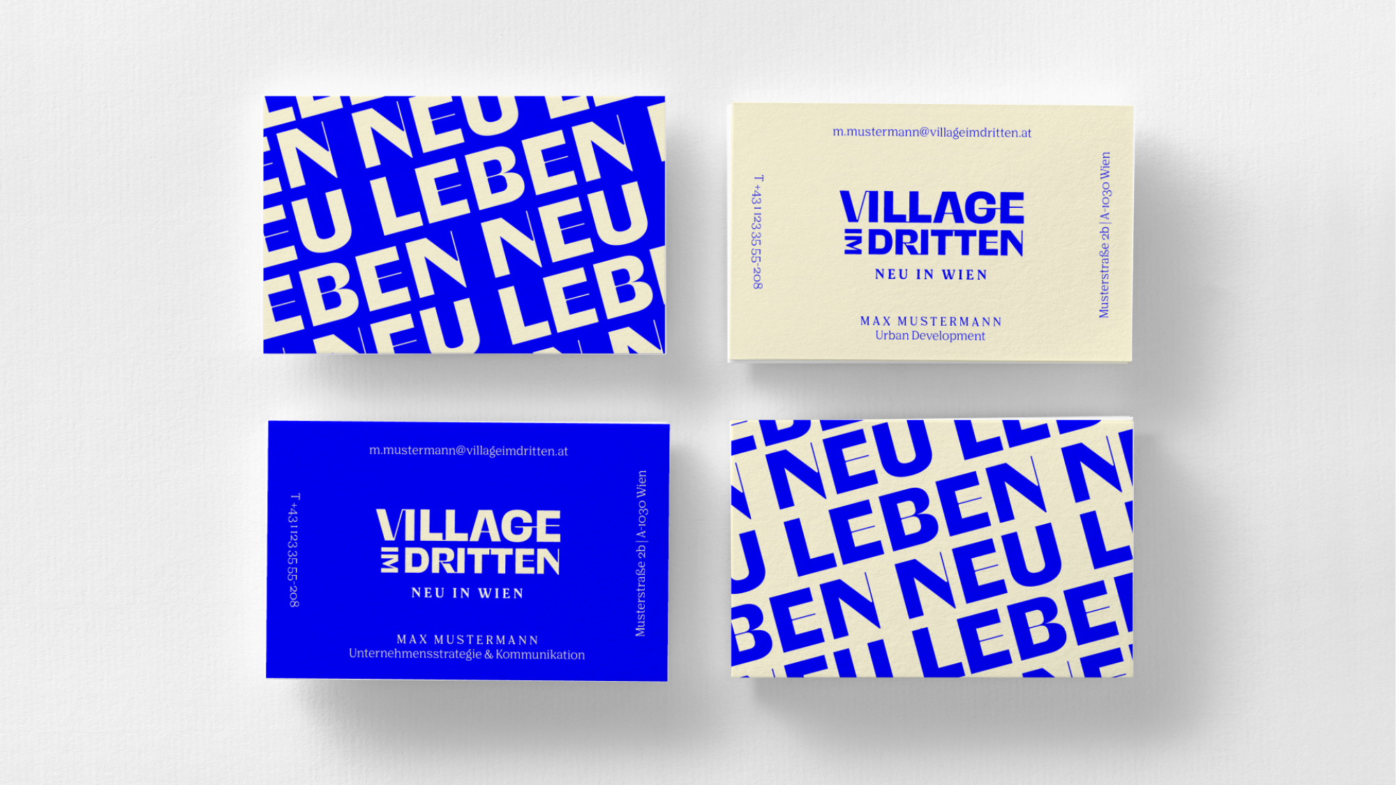 Mit dem Namen VILLAGE IM DRITTEN wurde dem Projekt eine neue Dimension verliehen, die die Sehnsucht nach Wohlfühlen, Natur, Vernetzung, Familie und unkomplizierten Strukturen mit urbaner Lebensweise zusammen bringt. Die moderne, verbindende Corporate Identity verstärkt das Gefühl der Individualität in einem von Gemeinschaft geprägten Zukunftsprojekt.