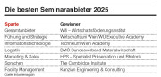An der Spitze steht heuer das Wifi, Wirtschaftsförderungsinstitut der Wirtschaftskammer Österreich, das mit einer Bewertung von 2,14 den ersten Platz eroberte. Damit verdrängt das Wifi die bisherige Nummer eins, die TÜV Austria Akademie, auf Platz drei. „Der erneute Spitzenplatz bestätigt unseren Anspruch, mit innovativen Qualifizierungsangeboten die wichtigste Fachkräfteschmiede der österreichischen Wirtschaft zu sein”, betont Markus Raml, Kurator des Wifi Österreich.”