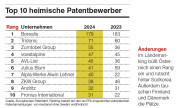 Der größte Patentanmelder beim Österreichischen Patentamt ist das steirische Unternehmen AVL List mit 192 angemeldeten Erfindungen, gefolgt von Julius Blum mit 61 und Zumtobel Lighting GmbH mit 35.
