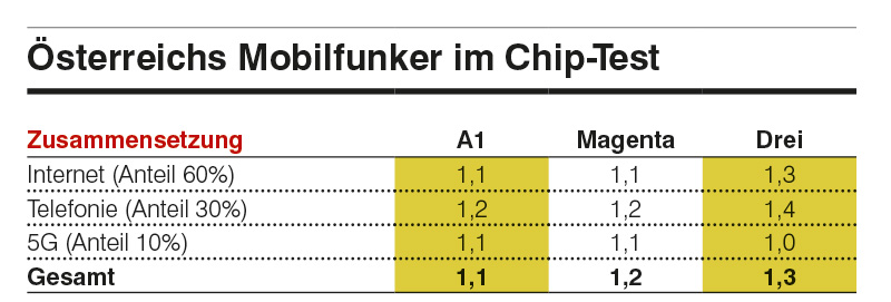 Mehr denn je gelte, dass Österreich zwischen drei sehr guten Mobilfunknetzen wählen könne, so das Chip-Urteil. Denn die Unterschiede seien minimal. (hk)