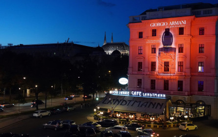 WIEN. Gewista und Movelight lassen die Fassade des Palais Lieben-Auspitz mit einer Lichtinstallation leuchten. Auf 300 Quadratmeter wird bis Ende Oktober mit einem roten Sujet der neue Duft Sì Passione von Giorgio Armani vorgestellt.