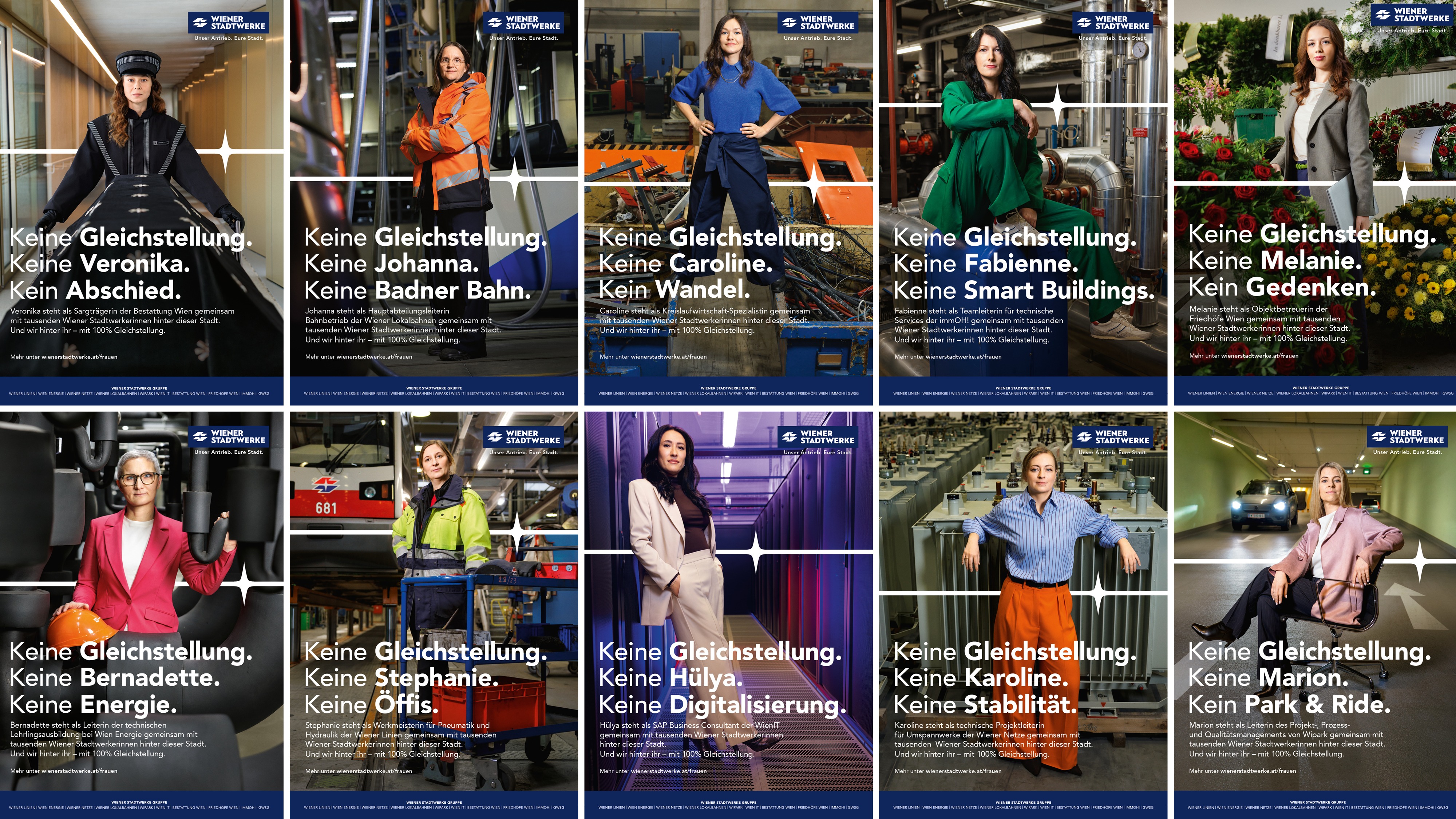 Rund 19.000 Mitarbeiter sind bei den Wiener Stadtwerken beschäftigt. Ein erheblicher Teil der Leistungen werde von Frauen erbracht, die in unterschiedlichen Bereichen Verantwortung übernehmen – etwa auf Schienen und Baustellen, in Leitstellen und Werkstätten sowie in Büros und Führungspositionen. Das Kampagnenmotto „Keine Gleichstellung. Keine Frauen. Keine Stadt.“ soll diese Rolle verdeutlichen.