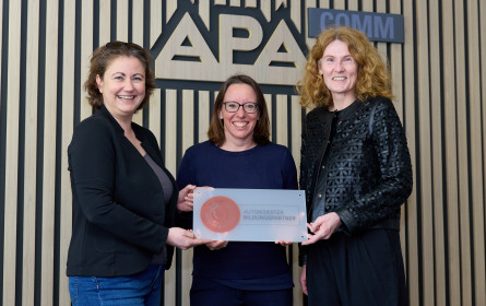 Die Urkundenübergabe für die Austrian-Standards-Zertifizierung des Lehrganges fand im APA-Pressezentrum durch Veronika Hofer (Teamlead Personenzertifizierung & Product Development, Austrian Standards) statt. Julia Wippersberg (Geschäftsführerin APA-OTS) sowie Barbara Herbst (Lehrgangsleiterin) nahmen die Auszeichnung entgegen.