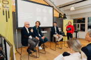 Ein Panel mit Experten aus Medien, Startups und Kultur beschäftigte sich mit Chancen und Risiken von KI in der Arbeitswelt. Die Teilnehmenden diskutierten unter anderem ethische Fragen und die Bedeutung von Bildung im Umgang mit KI. Genannt wurden Einsatzbereiche in Textproduktion, Programmierung und Kunst.