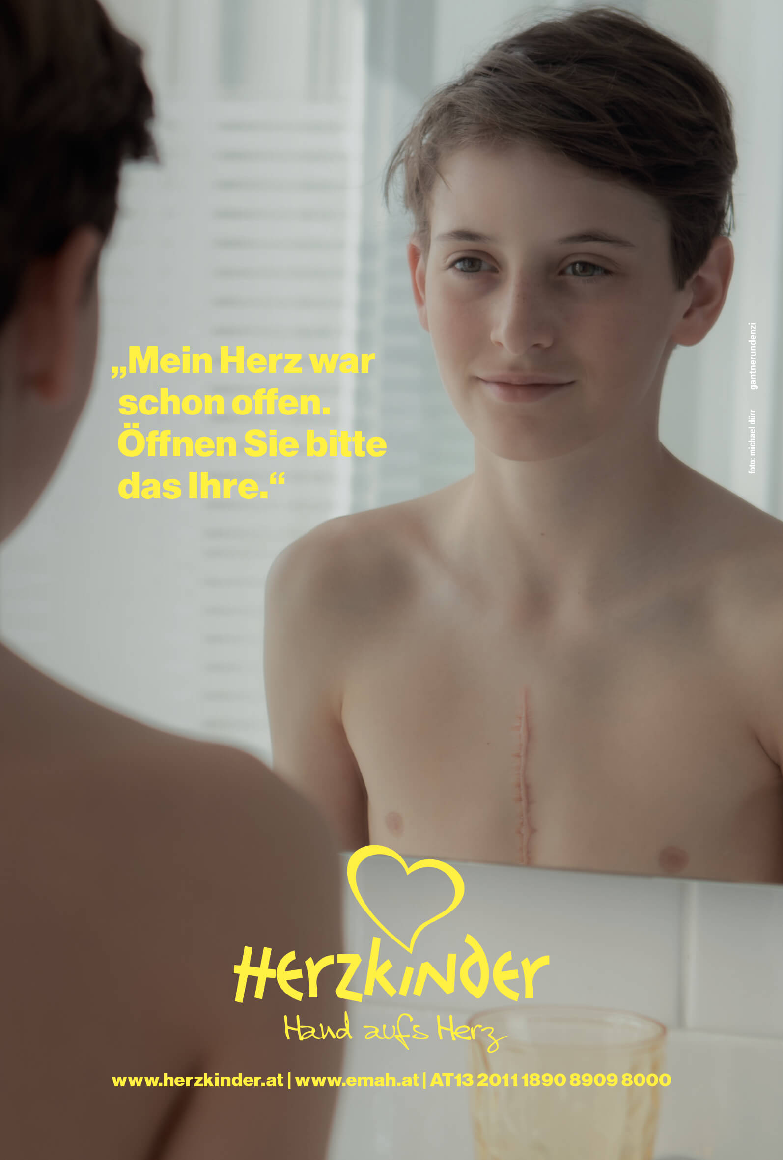 Im Zentrum der Kampagne stehen Jugendliche, die auf den ersten Blick ein selbstbewusstes, erfolgreiches Leben führen. Erst auf den zweiten Blick wird ihre Geschichte sichtbar: eine große Narbe auf der Brust zeigt, dass sie bereits am offenen Herzen operiert wurden. Die Spots und Anzeigen erzählen von Hoffnung, Lebensfreude und dem Mut, trotz schwerem Start ins Leben Großes zu erreichen.