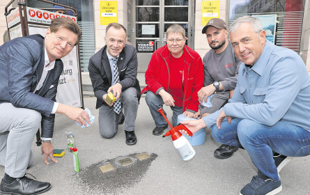 SALZBURG. In einer gemeinsamen Initiative haben Mitarbeiter der Progress Werbung die sogenannten „Stolpersteine” in Gedenken an die gefallenen Eisenbahner Karl Böttinger, Matthias Holzer, Andreas Rehrl am Max-Ott-Platz gereinigt und sichtbarer gemacht. Unterstützung kam vom Salzburger Bürgermeister Bernhard Auinger und Martin Panosch, Landesdirektor der Wiener Städtischen Versicherung. „Die Bottom-up-Initiative kommt direkt aus unserem Team. Wir sind ein weltoffenes Unternehmen mit Menschen aus den unterschiedlichsten Ländern, Religionen und Herkünften. Uns allen ist es wichtig, dass das Geschehene nicht vergessen wird, und das zeigen wir”, so Fred Kendlbacher, Geschäftsführer der Progress Werbung. Auch Stadtchef Bernhard Auinger ist von der Aktion begeistert: „Gerade jetzt braucht es Unternehmen und Menschen mit Engagement, Mut und der Sicherheit, dass jeder Einzelne etwas bewirken kann.”