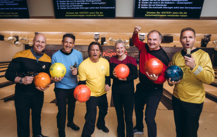 Bei der vierten Auflage des ORF-Enterprise Bowling Cups ging es jedoch um andere Erfolge, um die 86 Teams auf Einladung von Oliver Böhm, Heinz Mosser, Christopher Haberlehner, Matthias Seiringer und Dorit Wolkenstein wetteiferten. Auf den frisch polierten Lanes im Wiener „Kugeltanz“ hatten die rund 600 Gäste die Pins im Visier und erzielten gemeinsam High Scores. Nicht nur sportlich beeindruckten die Gastgeber nach monatelangem Training mit geübten Approaches, sondern auch modisch. Das Team der ORF-Enterprise glänzte diesmal in astronomisch eleganten Star-Treck-Looks.