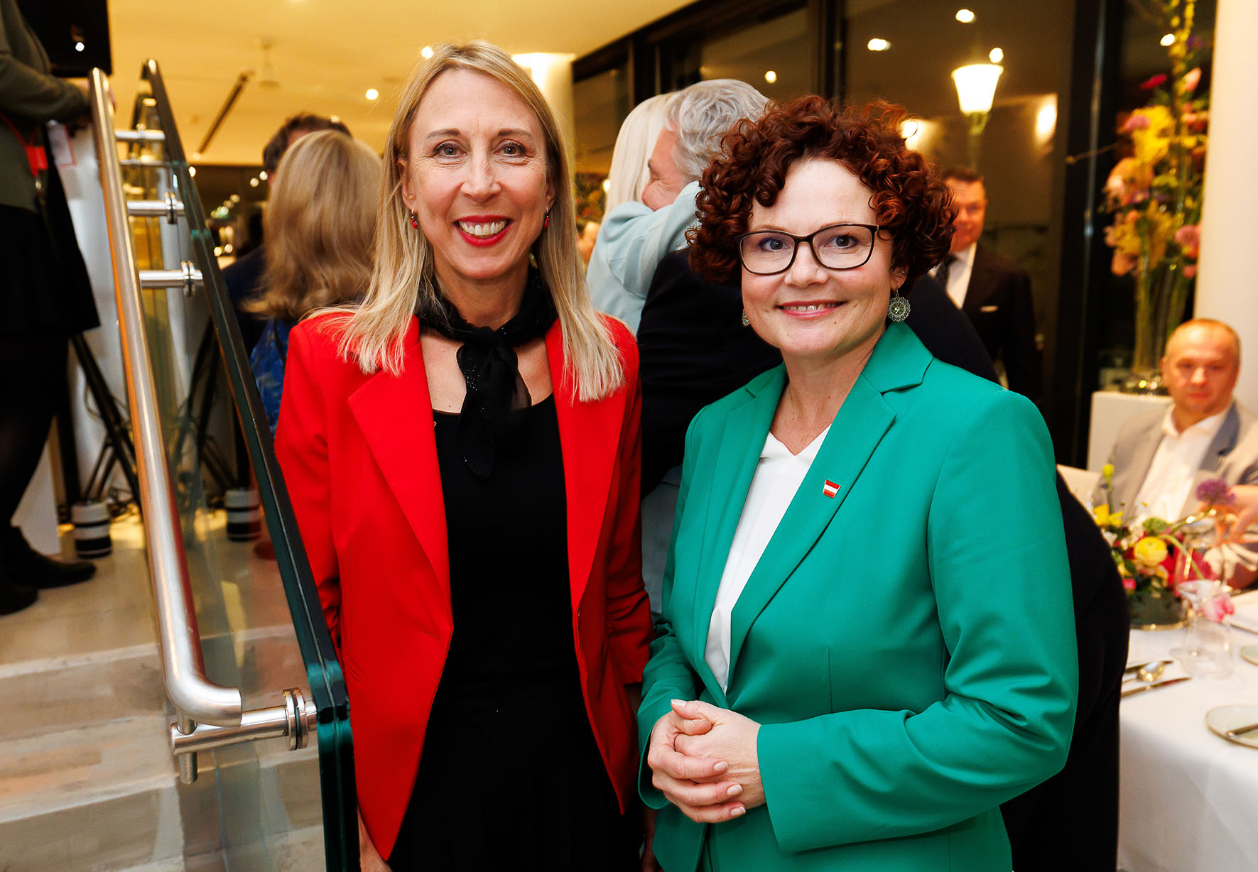 Als musikalischen Programmpunkt hat das heimische Duo Minerva mit ihrem kunstvollen Crossover-Klang Einblicke in ihre Musik und somit den Auftakt für das etablierte Get-Together gegeben. Unter den anwesenden Gästen: Bundesministerin Klaudia Tanner (Bundesministerium für Landesverteidigung) und Bundesminister Norbert Totschnig (Bundesministerium für Land- und Forstwirtschaft, Klima-und Umweltschutz, Regionen und Wasserwirtschaft), Staatssekretärin Elisabeth Zehetner (Bundesministerium Wirtschaft, Energie und Tourismus) sowie Leonore Gewessler und Martin Kocher als ehemalige Mitglieder der Regierung.