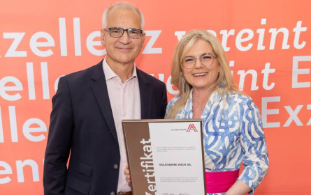 Die Volksbank Wien betont dabei die Verbindung von wirtschaftlicher Verantwortung und genossenschaftlicher Identität. Auch Monica Rintersbacher, Geschäftsführerin von Leitbetriebe Austria, hebt in diesem Zusammenhang das Engagement der Volksbank für nachhaltiges Wirtschaften und verlässliche Partnerschaften hervor: „Wir freuen uns, die Volksbank Wien AG erneut als Leitbetrieb auszeichnen zu dürfen. Die regionale Hausbank steht für langfristige und sehr vertrauensvolle Partnerschaften mit ihren Kundinnen und Kunden und setzt sich zudem für nachhaltiges Wirtschaften ein. Wir gratulieren dem Vorzeigeunternehmen zur Rezertifizierung.“