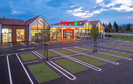 Der neu gebaute Spar-Supermarkt in Purbach fügt sich perfekt in die Landschaft und das Ortsbild ein. Die äußere Gestaltung erinnert an für die Region typische Scheunen und zeugt vom Fingerspitzengefühl der Planer:innen. Die verwendeten Materialien stehen gleichzeitig für zeitgemäße Architektur und makellose technische Ausführung.