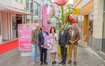 WELS. Der 1.000 Meter lange rote Teppich ist gelegt, Shopping-Pause-Liegestühle sind aufgestellt und das Wichtigste: die neueste Mode und Waren sind in den Shops ausgestellt. Alles ist bereit für die Welser ShoppingWeek in der Welser Innenstadt und in den Shoppingcentern XXX-Lutz, Max.Center, Shopping City Wels. Bürgermeister Dr. Andreas Rabl, Wirtschaftsstadtrat Dr. Martin Oberndorfer, Peter Jungreithmair (GF der Welser Marketing & Touristik GmbH), Michael P. Wipplinger (Obmann der Welser Kaufmannschaft) und die Centerleiterin Mag. Doris Panagl (max.center) haben heute Vormittag die ShoppingWeek offiziell eröffnet. Das Glücksrad bei der Anlaufstelle der Mode-Recycling-Aktion läuft bereits auf Hochtouren und viele Besucher durften sich schon über einen Gewinn freuen, den sie für ihr alte Kleidung bekamen.