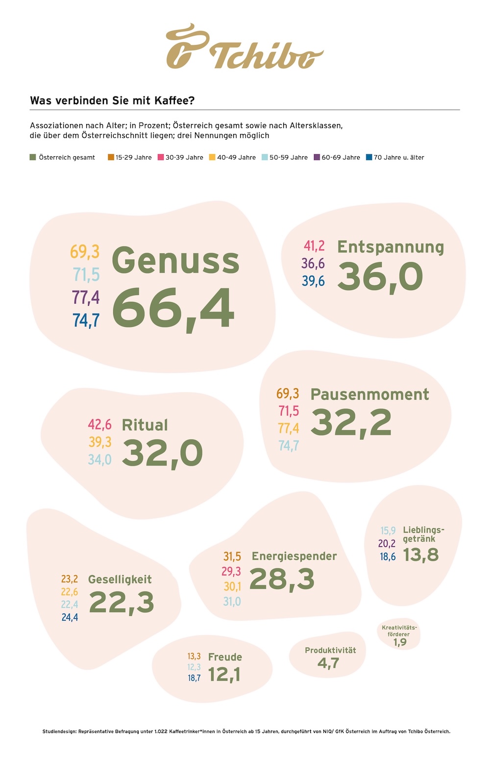 WIEN. Österreich liebt Kaffee, und das mehr denn je! Dieses Jahr wurden umgerechnet mehr als 1.000 Tassen getrunken. Mit einer Steigerung von knapp vier Prozent (2,65 auf 2,75 Tassen täglich) bleibt Kaffee 2025 also das Lieblingsgetränk hierzulande. Dieser und viele weitere interessante Einblicke in die Konsumgewohnheiten bieten die Tchibo Kaffee-Fakten – eine repräsentative Umfrage, die das Unternehmen gemeinsam mit NIQ/GfK Anfang des Jahres umgesetzt hat. Befragt wurden 1.022 österreichische Kaffeetrinker ab 15 Jahren.