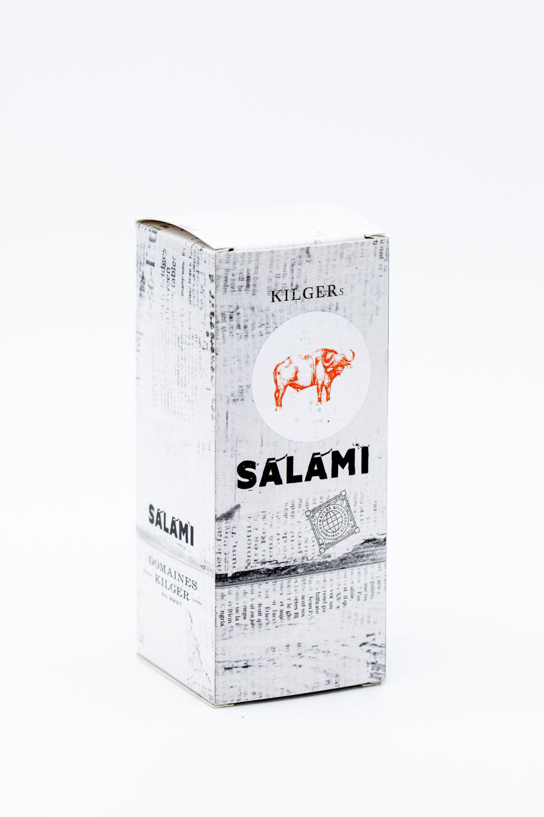 43 % Büffelfleisch, 33 % Schweinefleisch, Schweinespeck, Nitritpökelsalz (Speisesalz, Konservierungsstoff: Natriumnitrit), Gewürzmischung (Dextrose, Antioxidationsmittel: Ascorbinsäure, Gewürze, Speisesalz, Speisewürze, natürliches Aroma, Gewürzextrakte), Rohzucker, Gewürze, Rauch, Wursthülle nicht zum Verzehr geeignet.